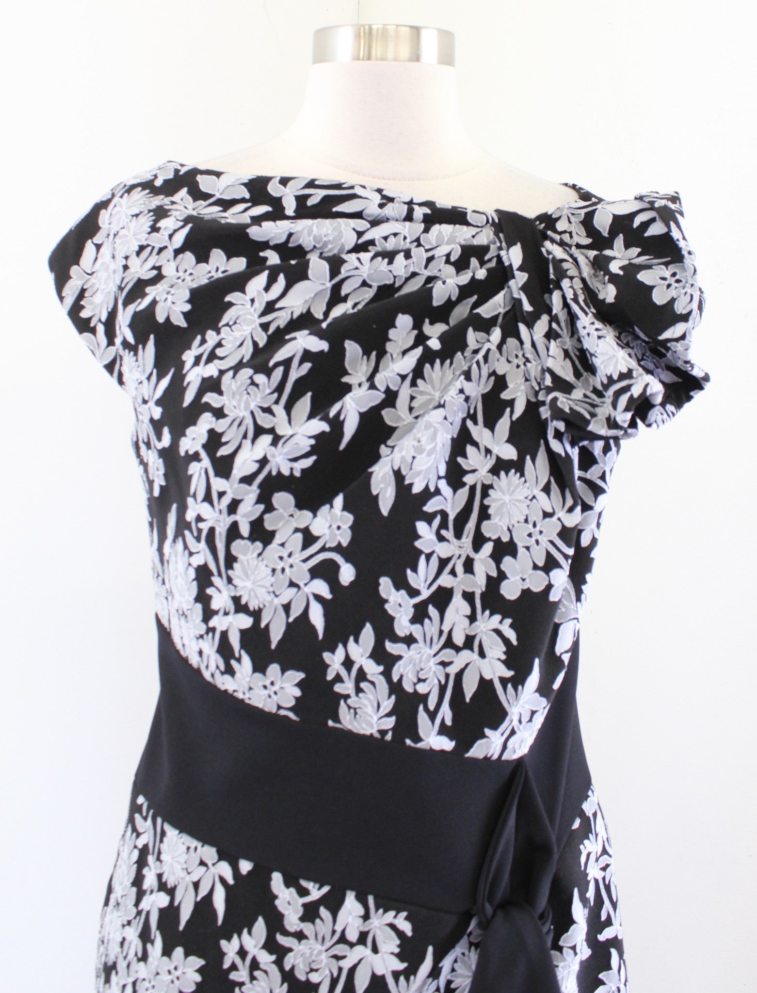 Tadashi Shoji Black Gray Floral Sanyu Stretch Jacquard Dress Cocktail Party 10