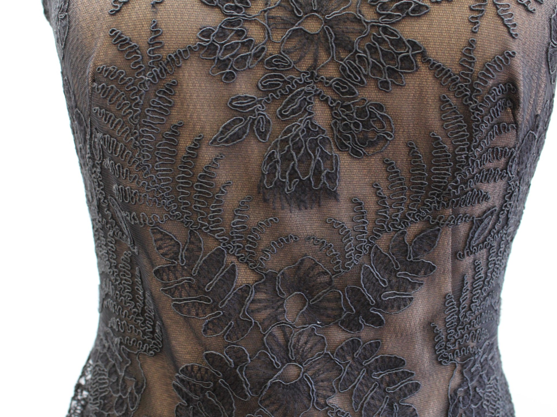 Tadashi Shoji Nanette Black Embroidered Lace Hi Lo Dress Cocktail Evening Size 2