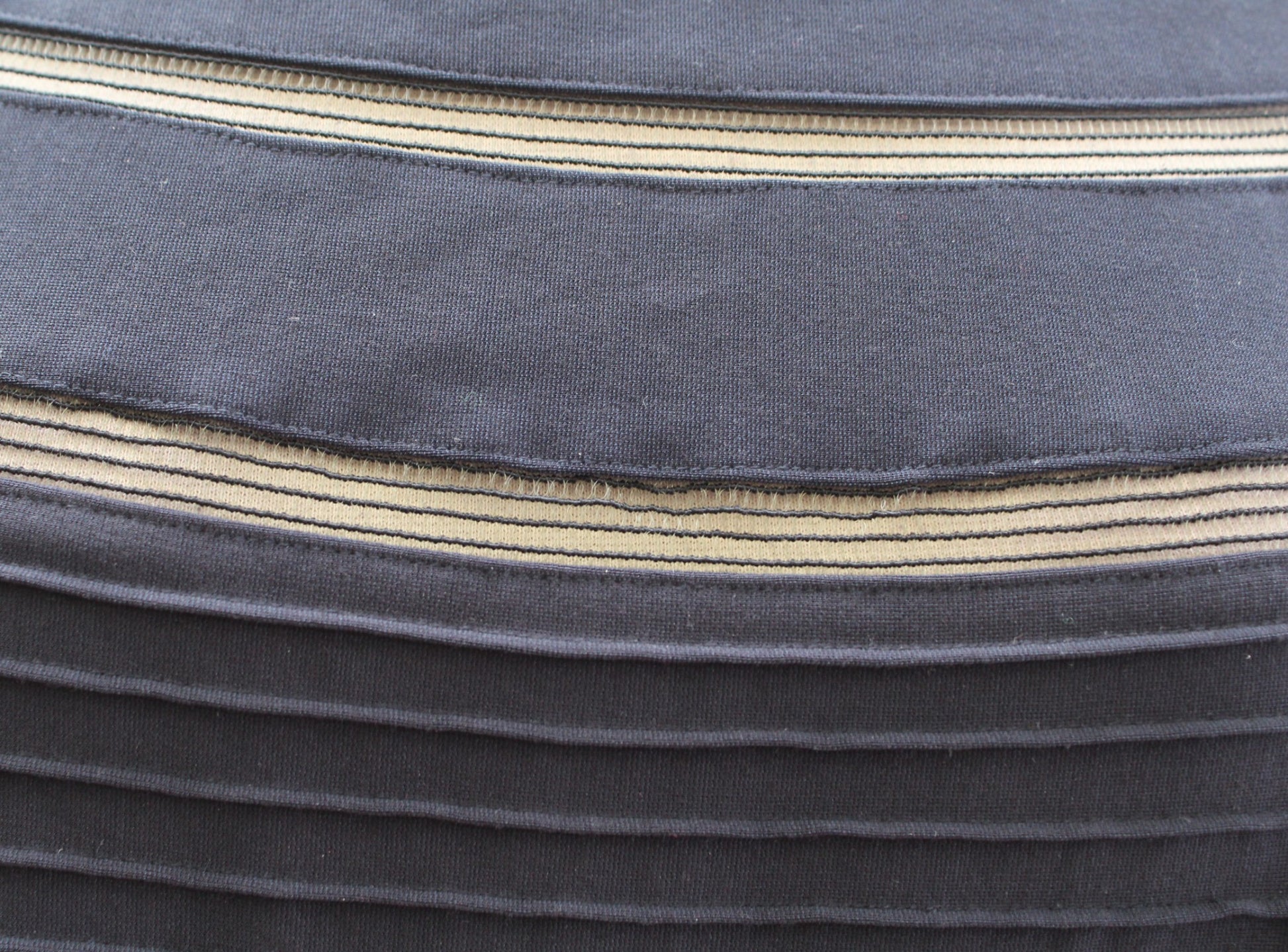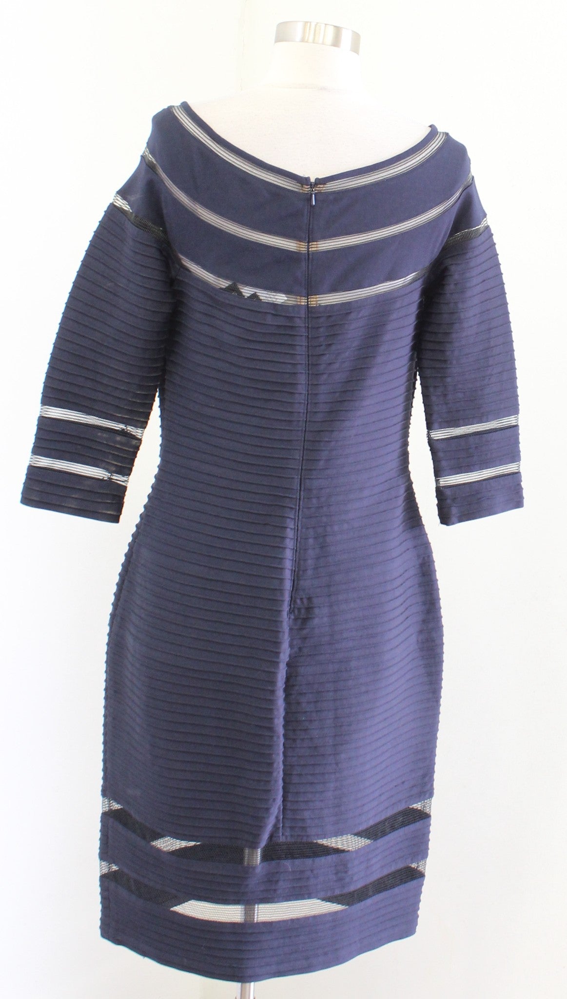 Tadashi Shoji Navy Blue Pintuck Striped Mesh Cutout Cocktail Evening Dress Sz M