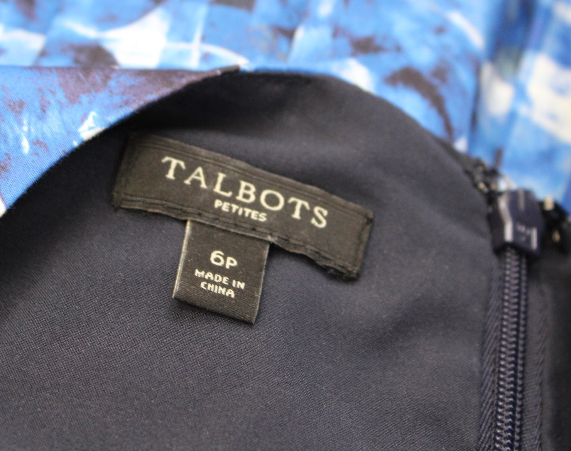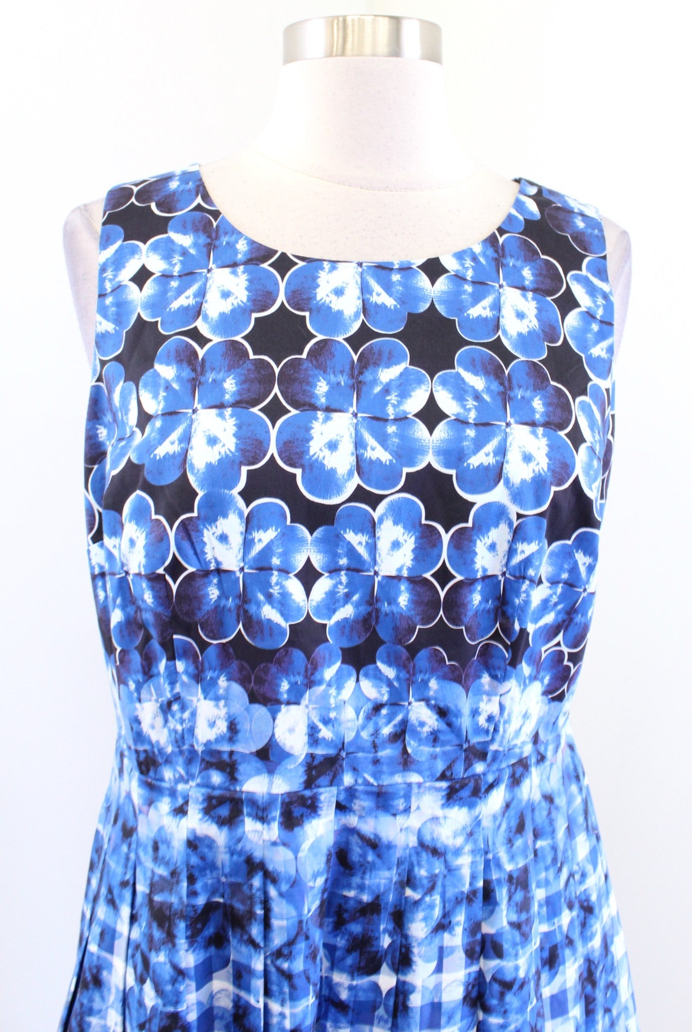 Talbots Blue Plaid Floral Ombre Print Fit and Flare Dress Size 6P Sleeveless