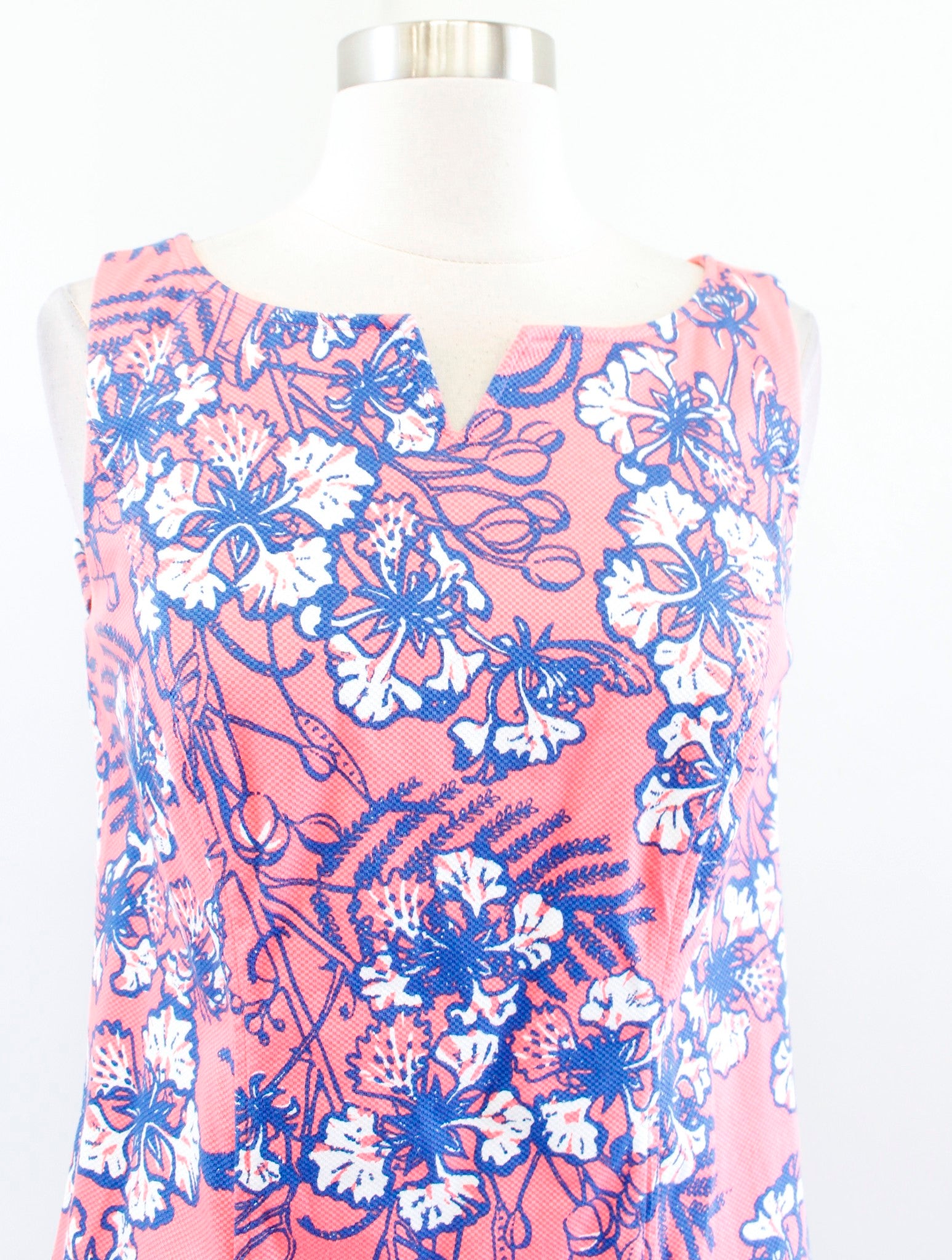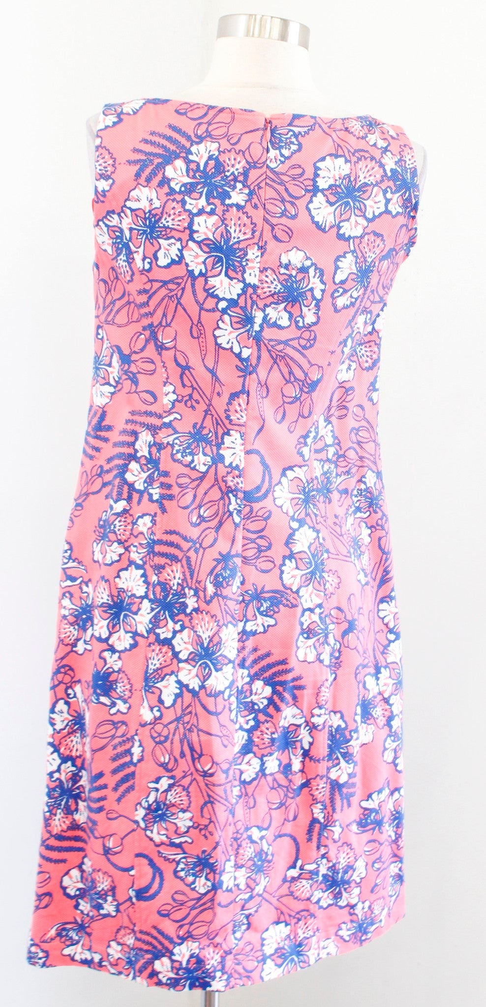 Talbots Coral Pink Blue Hibiscus Tropical Floral Print Shift Dress Size 2 Casual