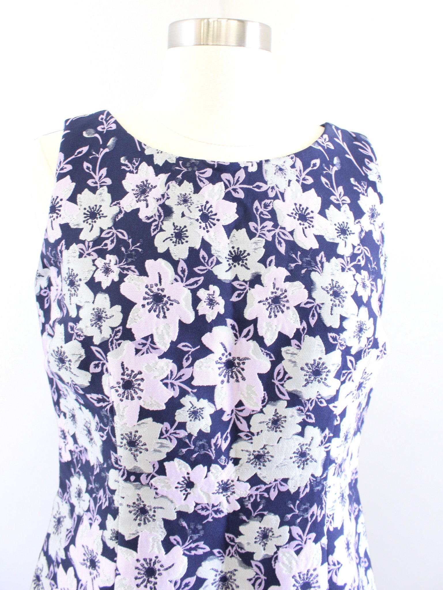 Talbots Navy Blue Lilac Falling Floral Print Sheath Dress Size 6P Cocktail