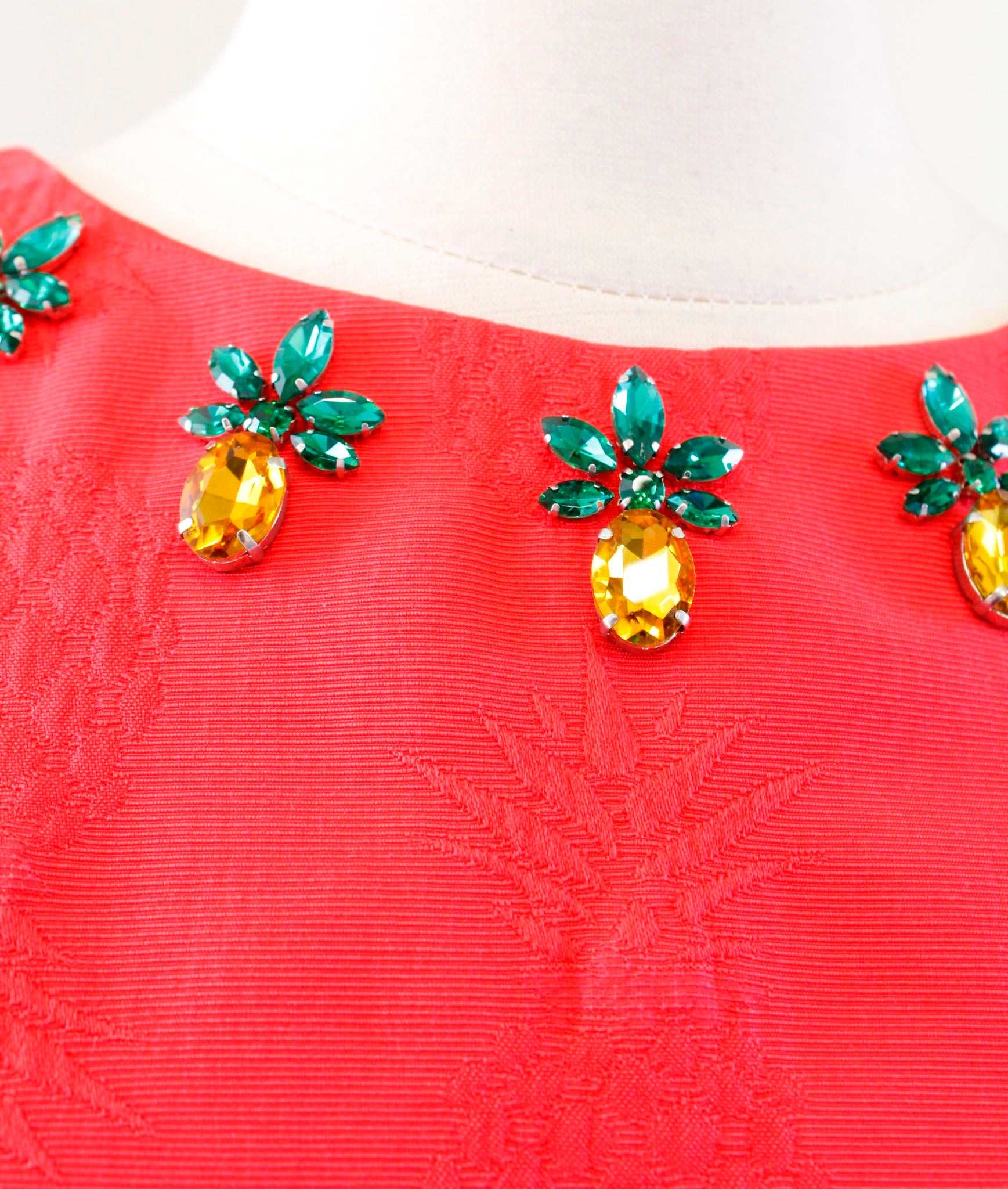 Talbots RSVP Coral Pineapple Embellished Jeweled Matelasse Sheath Dress Size 8P
