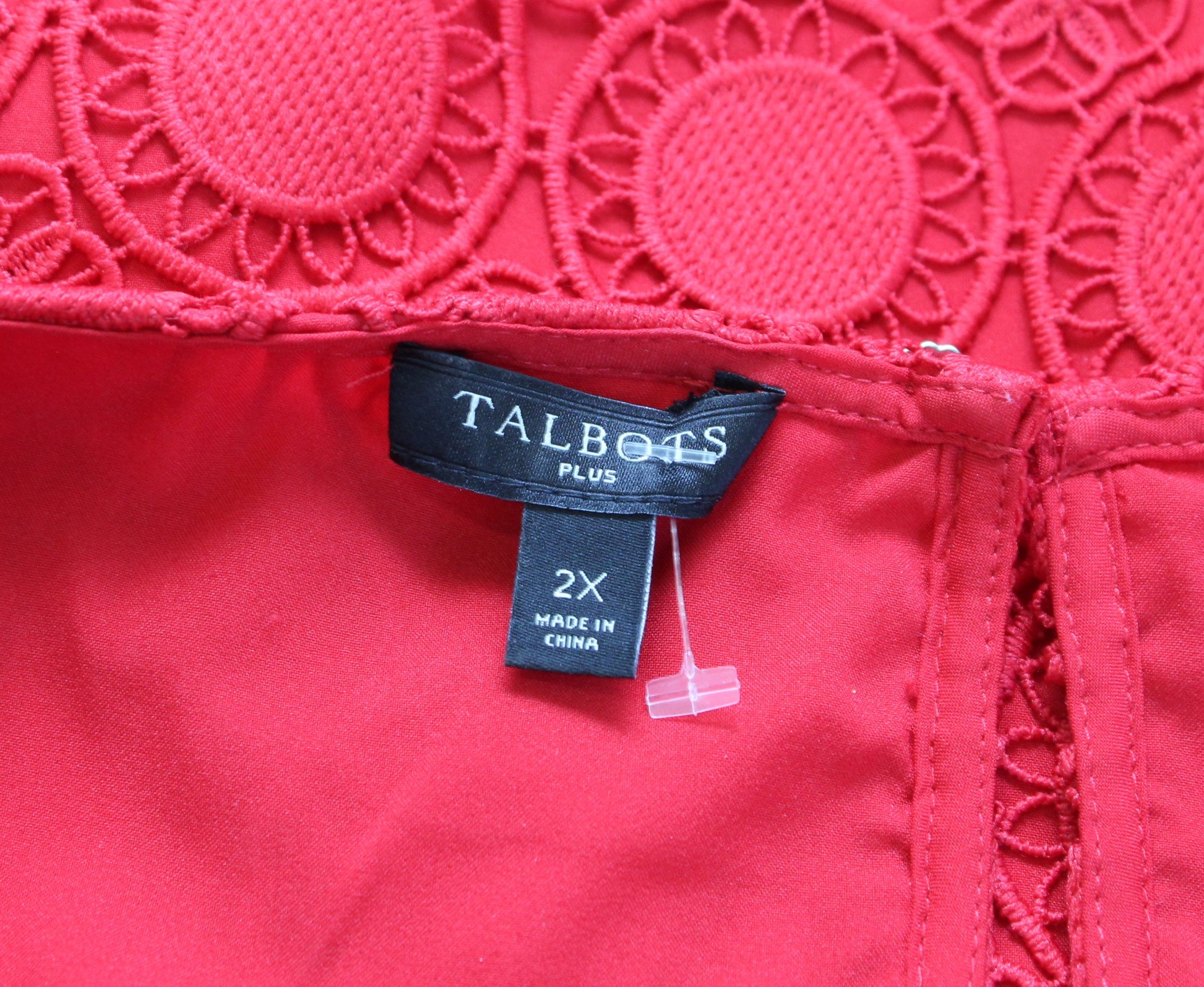 Talbots Womens Plus Red Scalloped Medallion Textured Top Blouse Size 2x