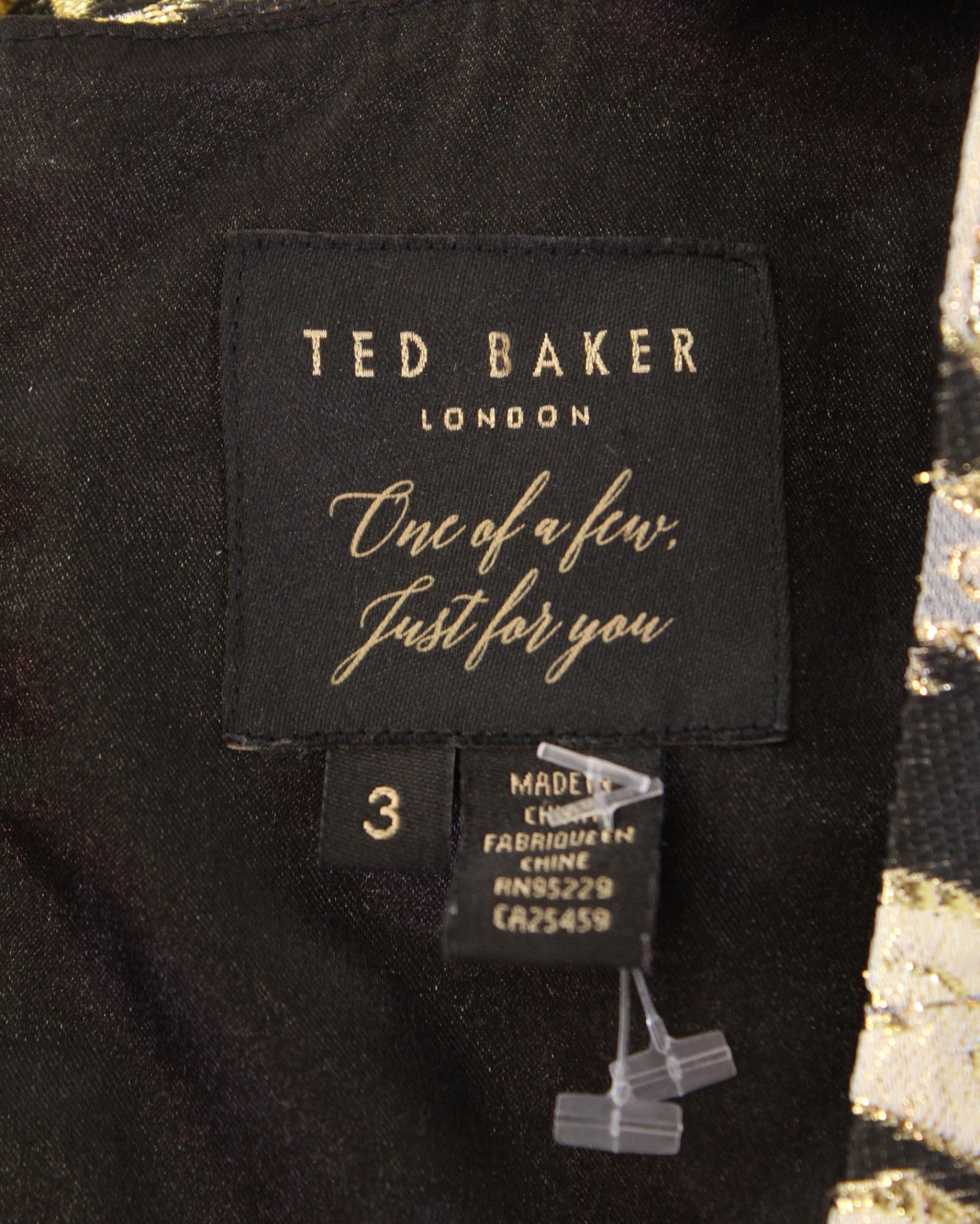 Ted Baker Black Gold Metallic Paisley Print Fit & Flare Cocktail Evening Dress 3