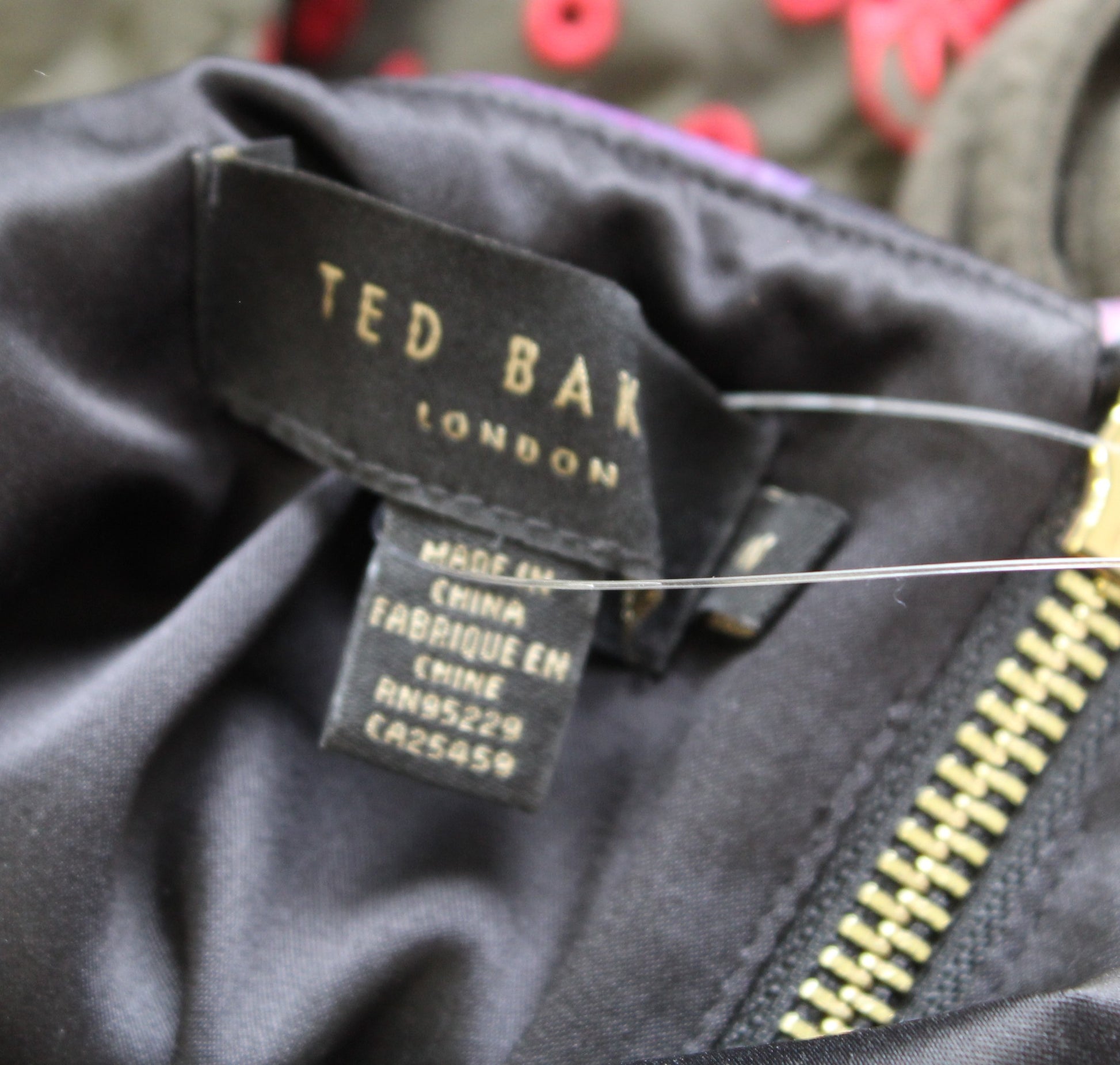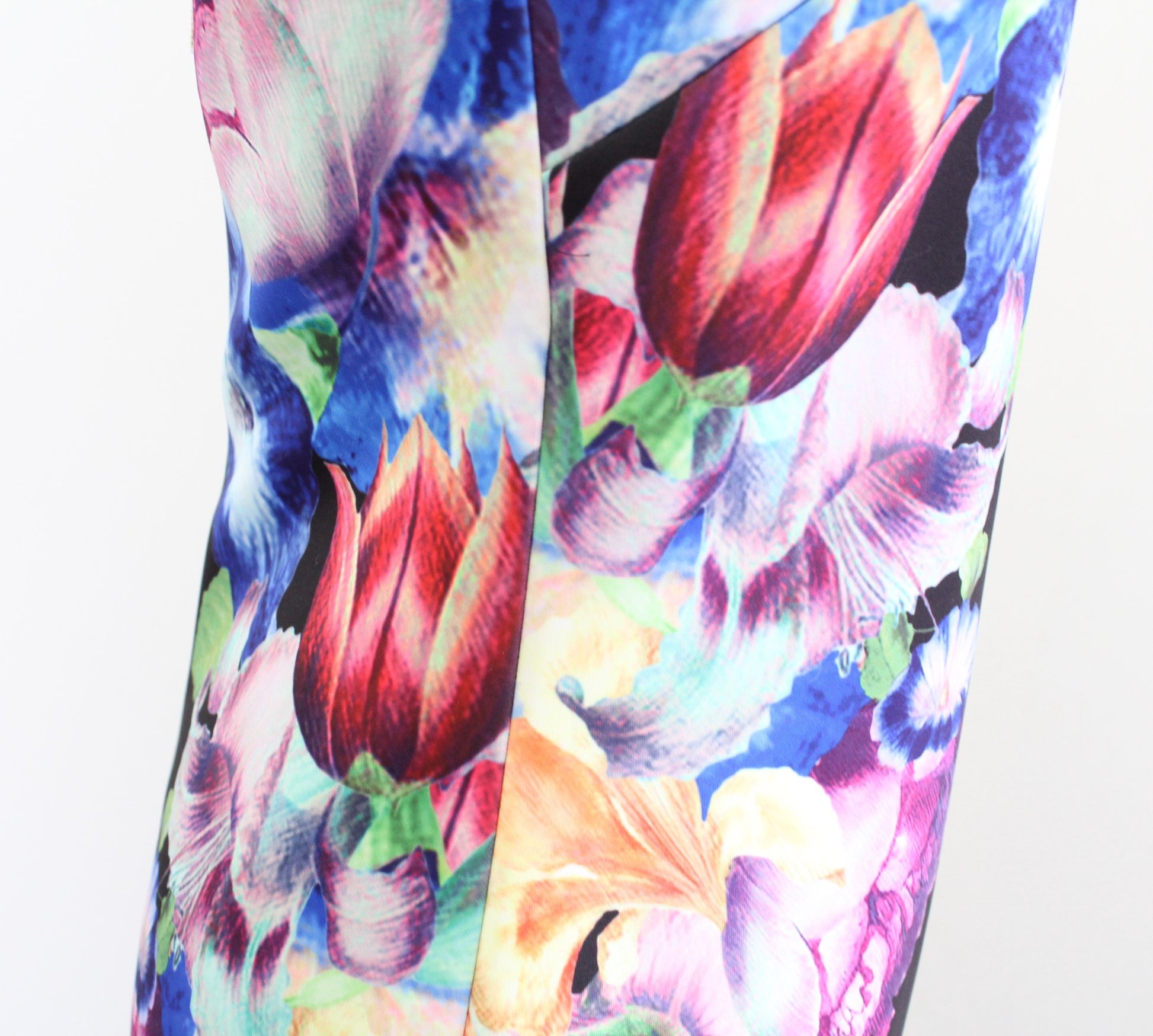 Ted Baker Deony Black Colorful Floral Bodycon Scuba Midi Dress Sz 2 Buckle Strap
