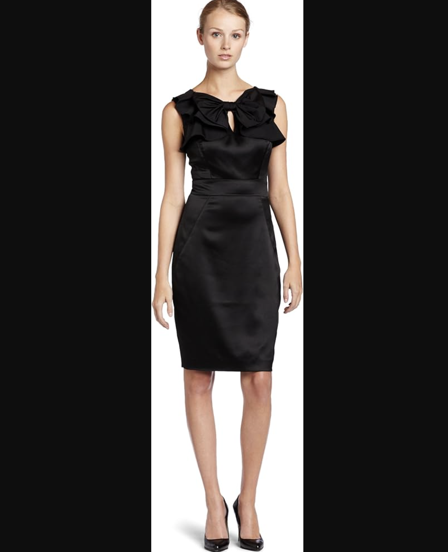 Ted Baker Ziaz Black Satin Big Bow Keyhole Sheath Dress Size 3 Cocktail Party