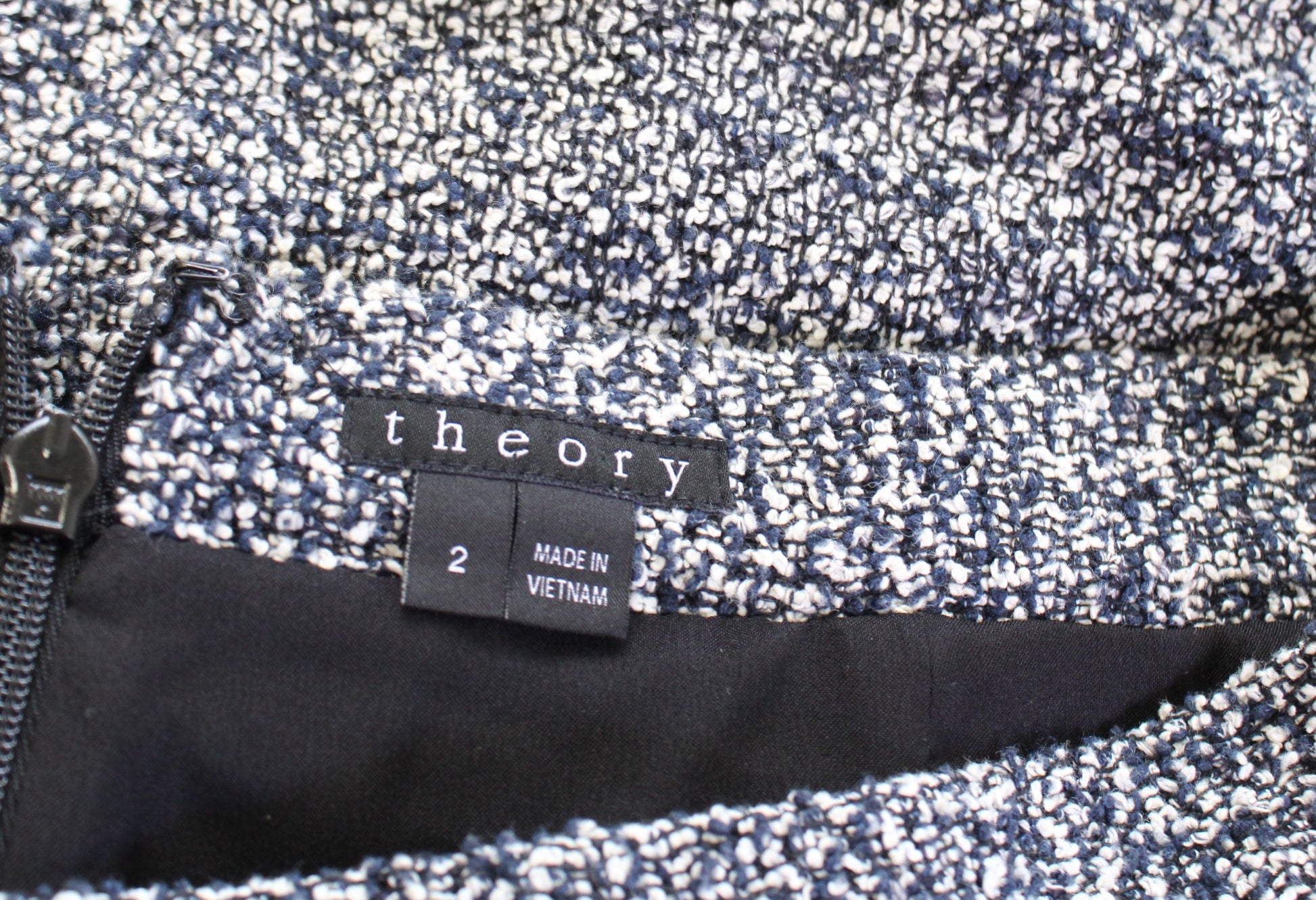 THEORY Palten Navy Blue Black White Boucle Tweed Mini Skirt Size 2 Womens