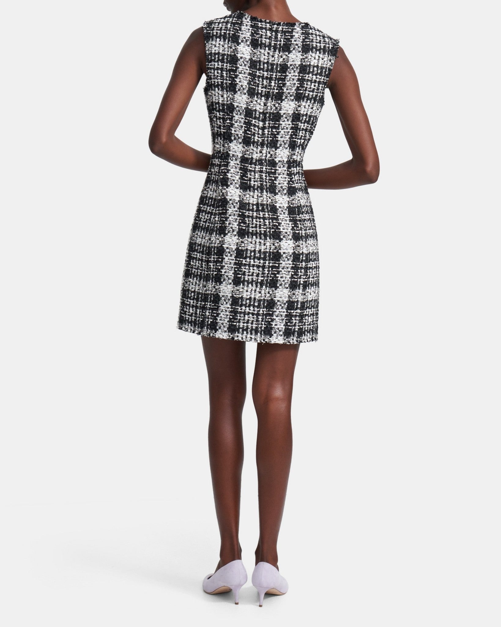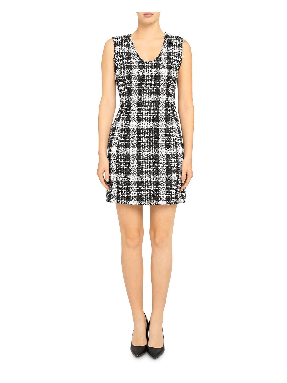 Theory Womens Sculpt U Black White Rubber Tweed Sheath Dress Size 8 Fringe