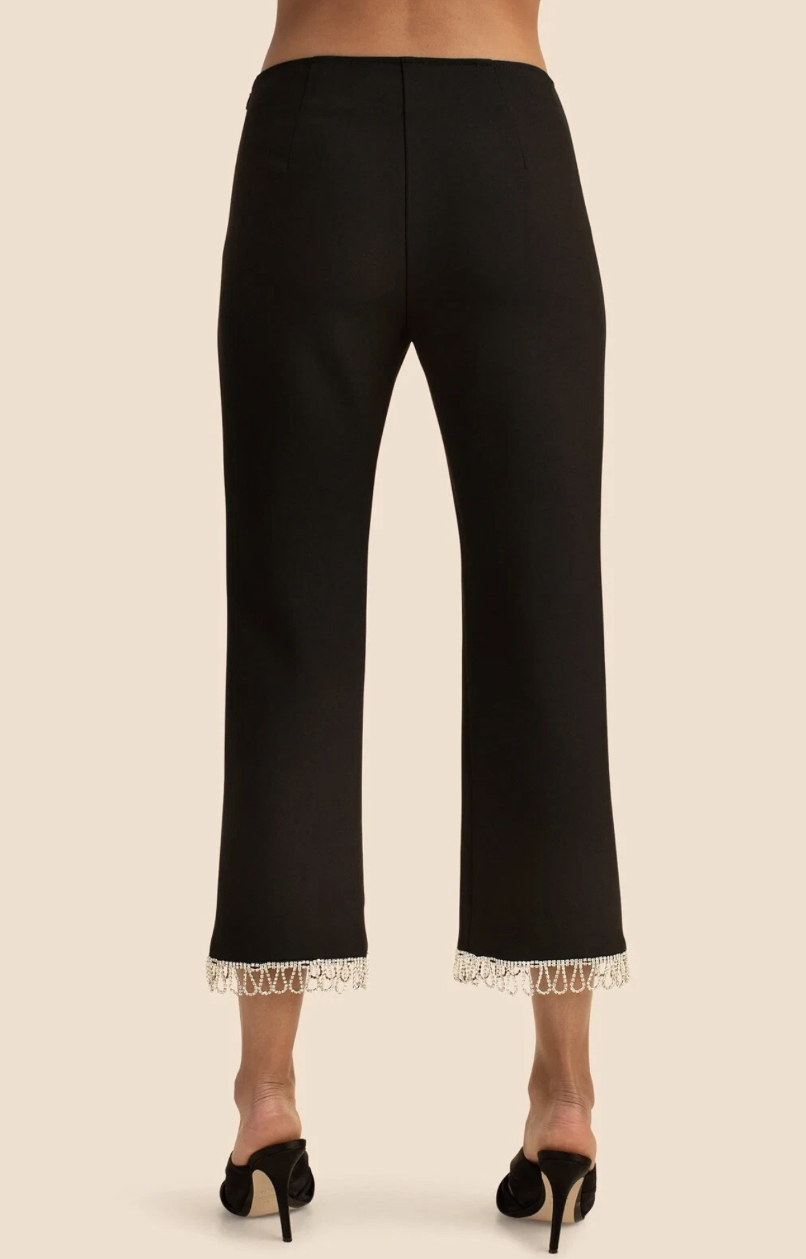 Trina Turk Black Rhinestone Embellished Fringe Hem Cropped Pants Capris Size 0