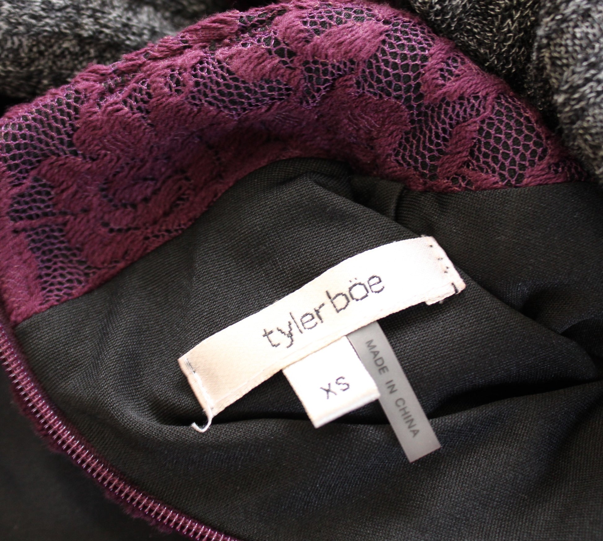 Tyler Boe Plum Burgundy Floral Lace Illusion Mock Neck Shift Dress Size XS