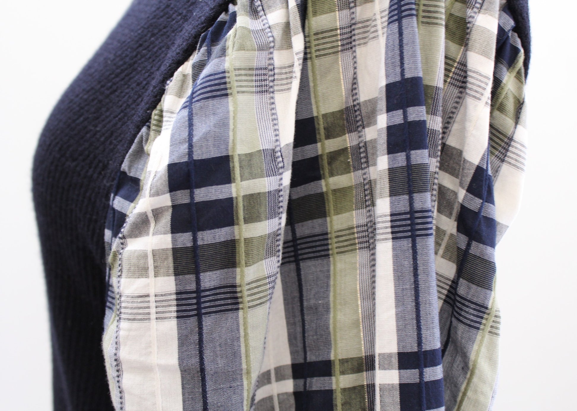 Veronica Beard Leila Plaid Puff Sleeve Ribbed Knit Sweater Top Size XL Wool