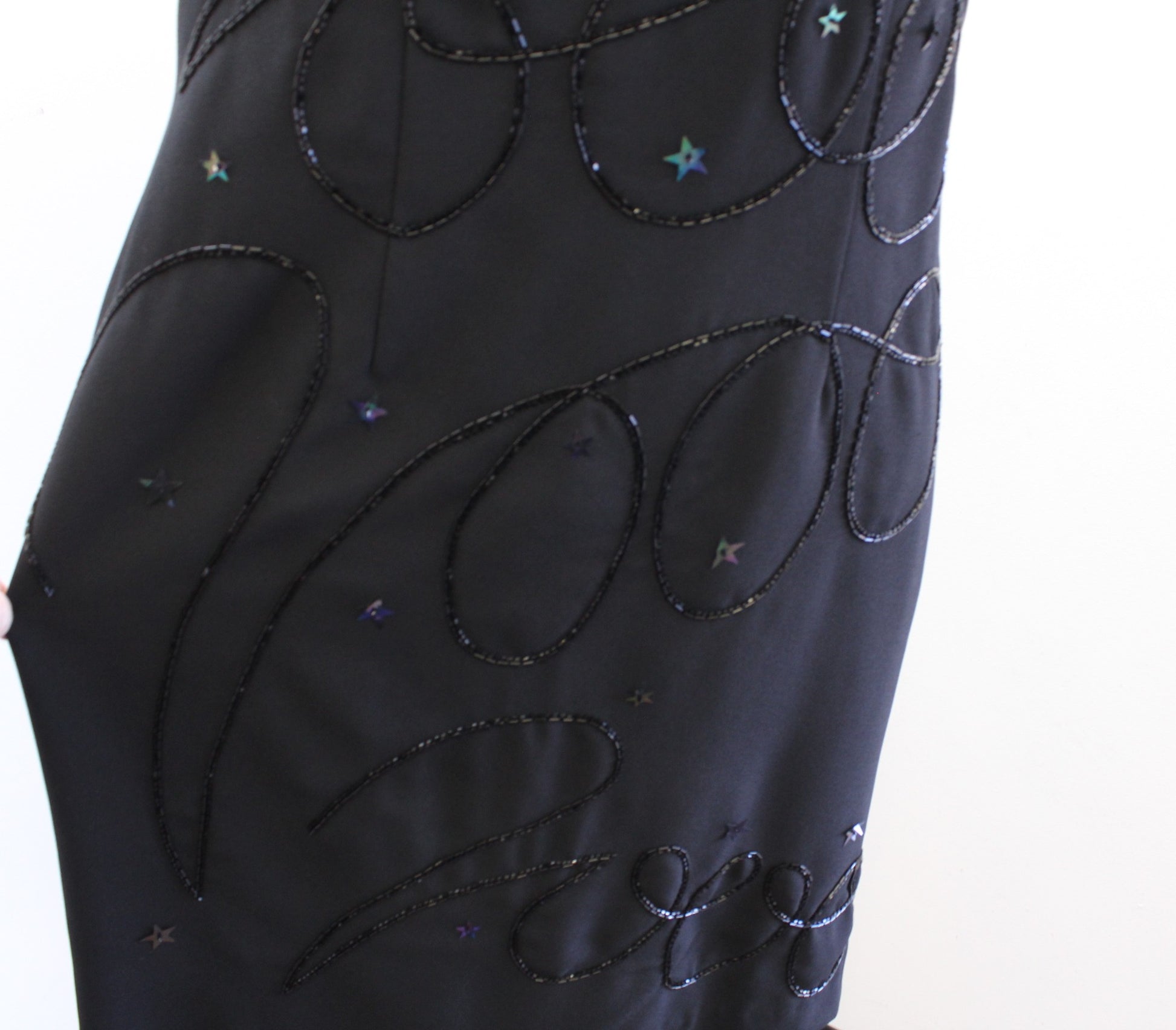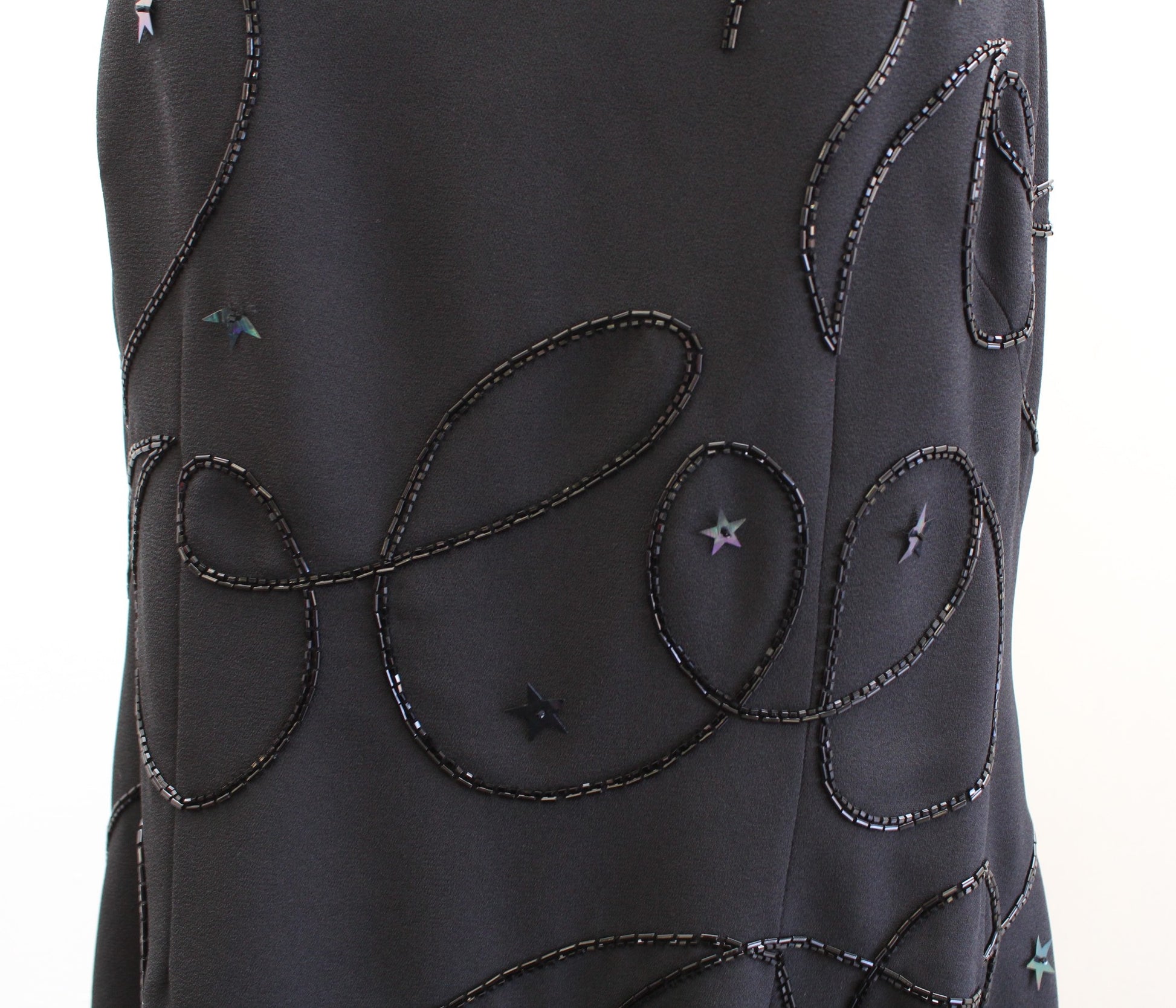 Vtg 2000 Millennium Black Sequin Beaded Star Cocktail Party Dress Size 12