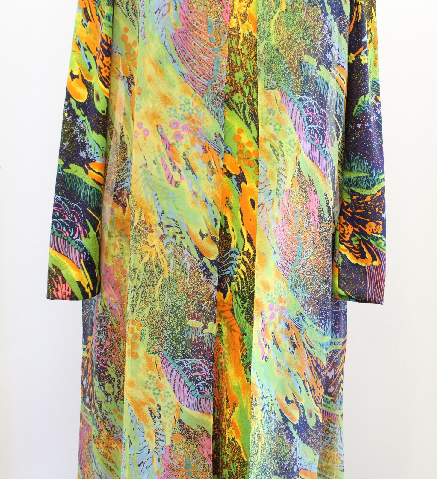 Vtg 70s Don Luis Dress Jacket Set Womens 10 Multicolor Abstract Maxi Art to Wear