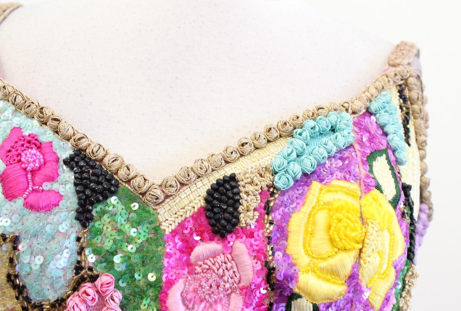 Vtg 80s Richilene Dress Sz 8 XS S Pink Floral Beaded Sequin Mini Party Cocktail