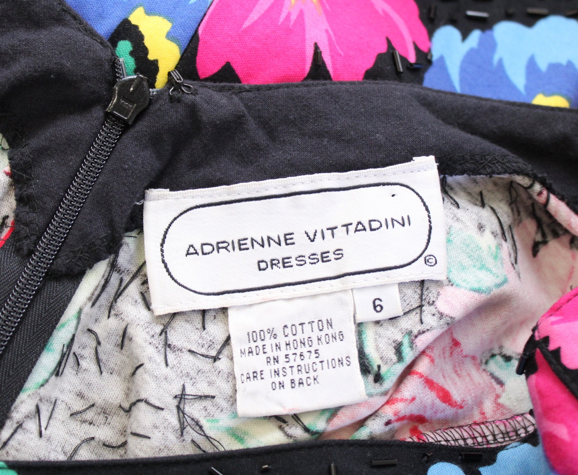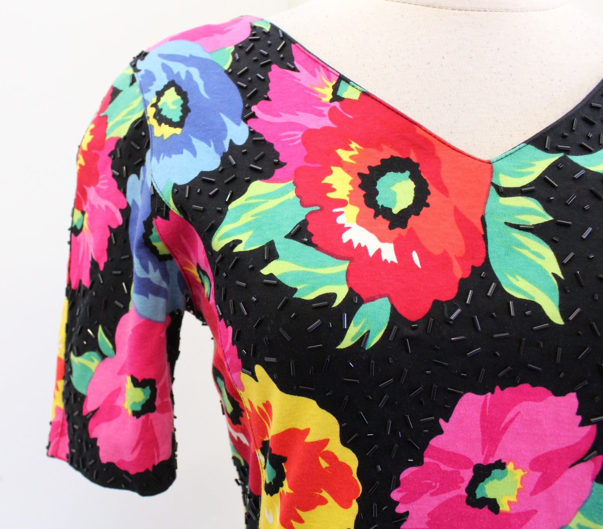 Vtg 90s Black Colorful Floral Print Sequin Embellished Dress Size 6 Cocktail