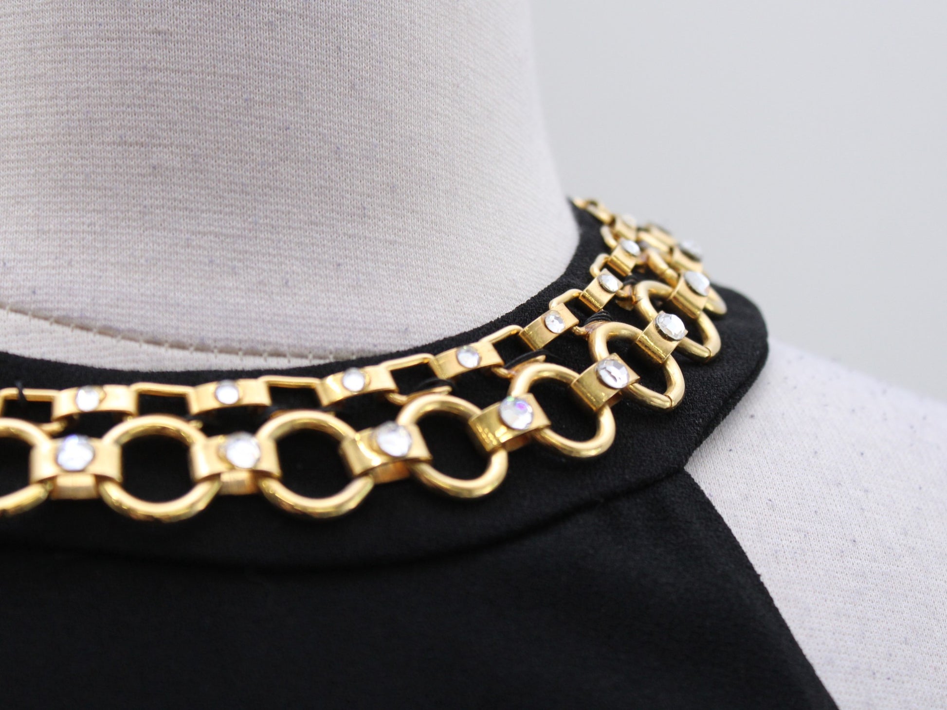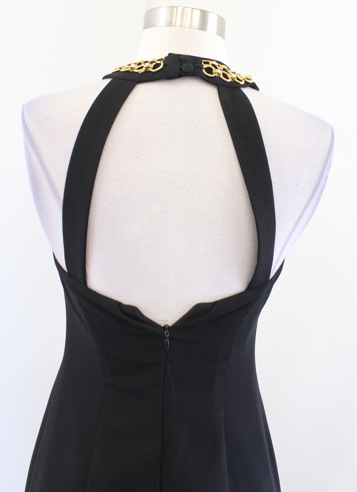 Vtg 90s Black Gold Chain Accent Halter Open Back Mini Dress LBD Size 2 Cocktail