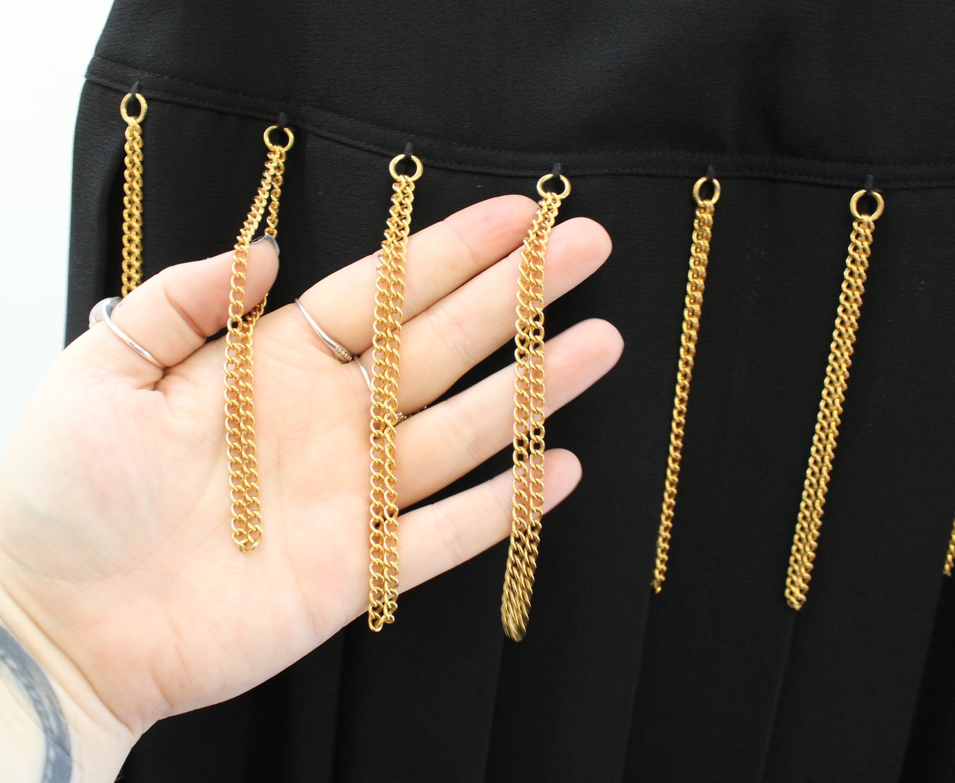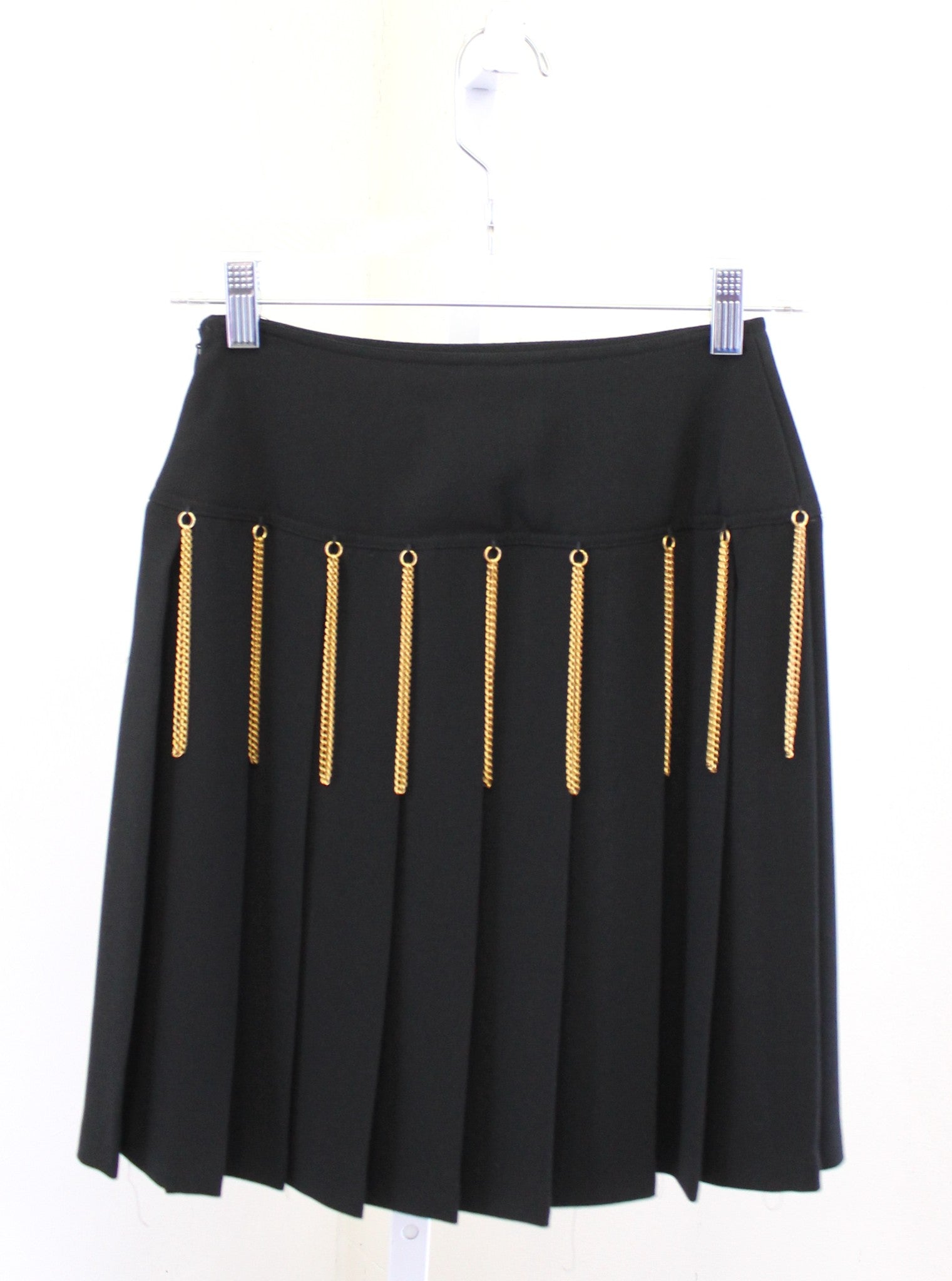 Vtg 90s Black Gold Chain Embellished Fringe Pleated Mini Skirt Size 4 Grunge