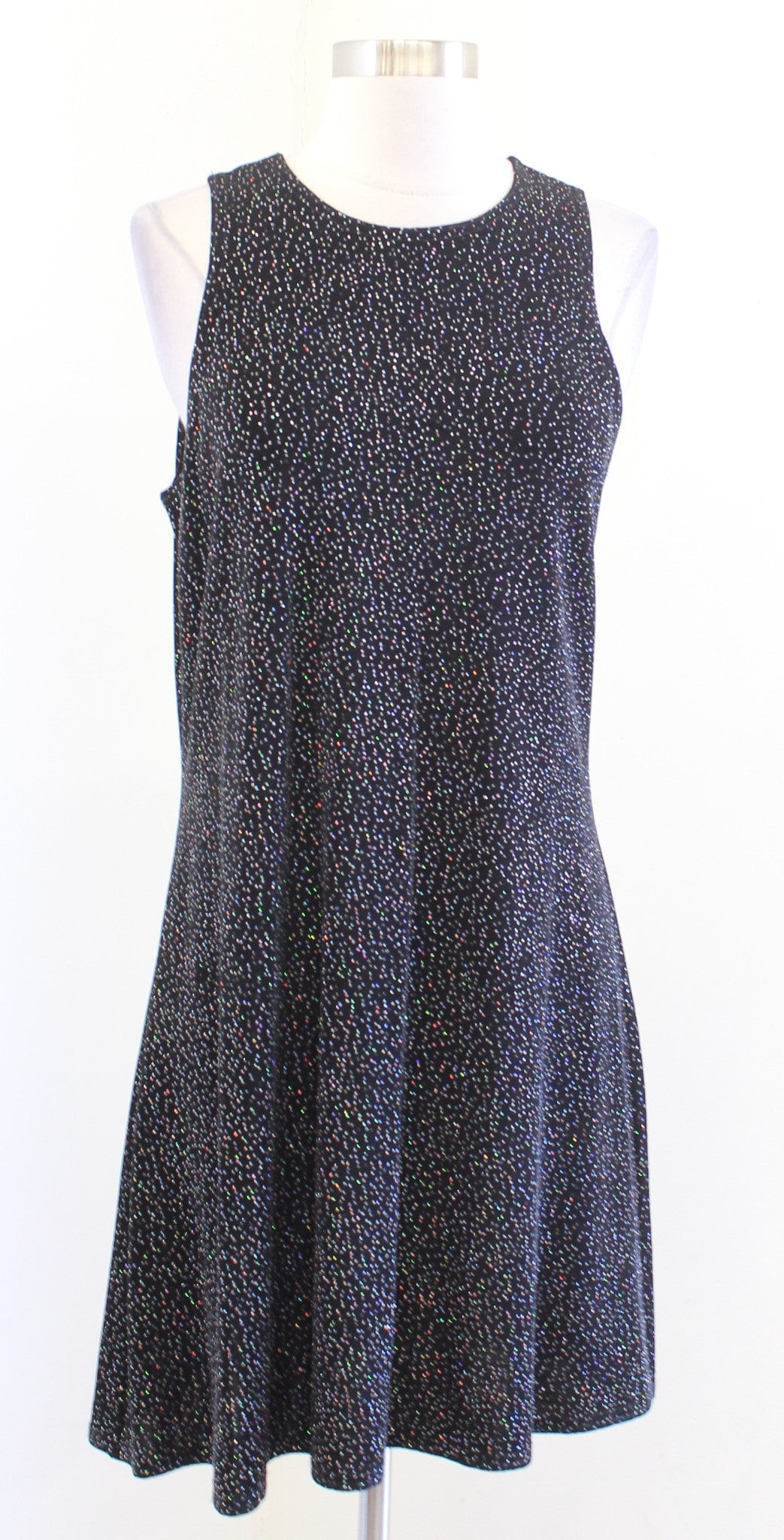 Vtg 90s Black Iridescent Sparkly Slinky Knit Cocktail Party Dress Size L Mini