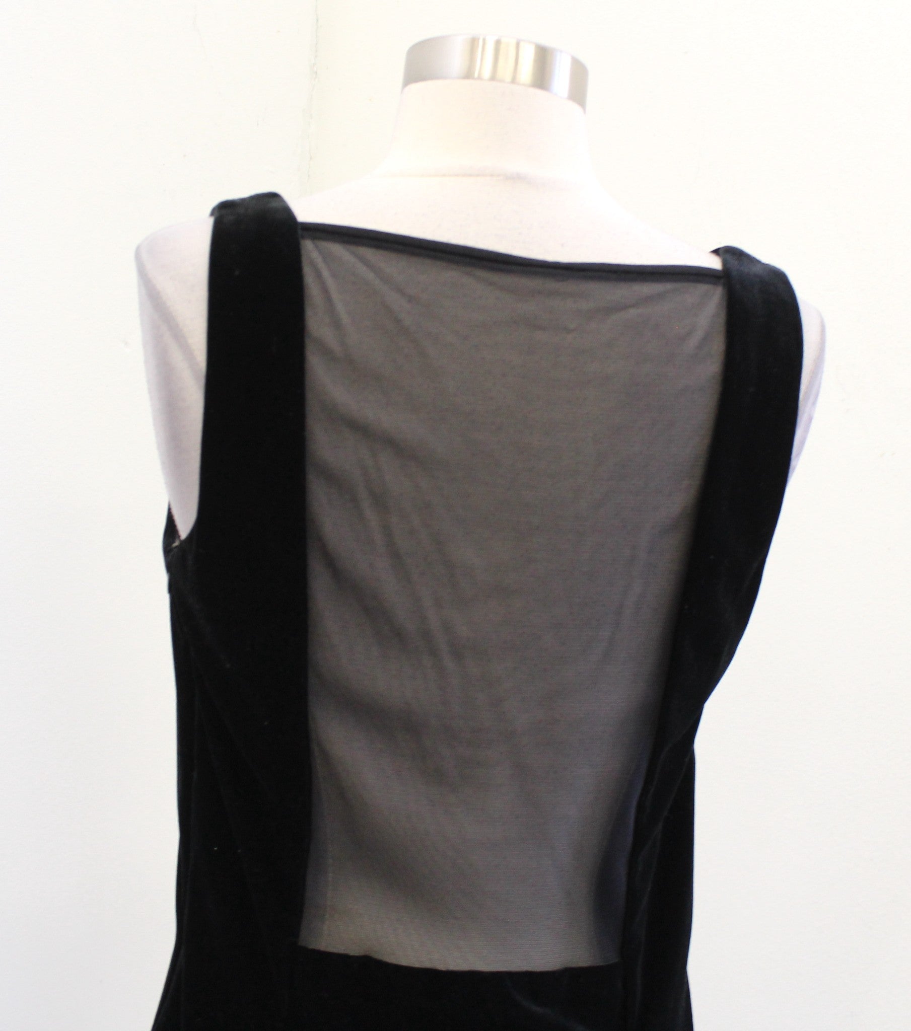 Vtg 90s Black Velvet Mesh Open Back Cocktail Party Dress Size 10 A Line LBD