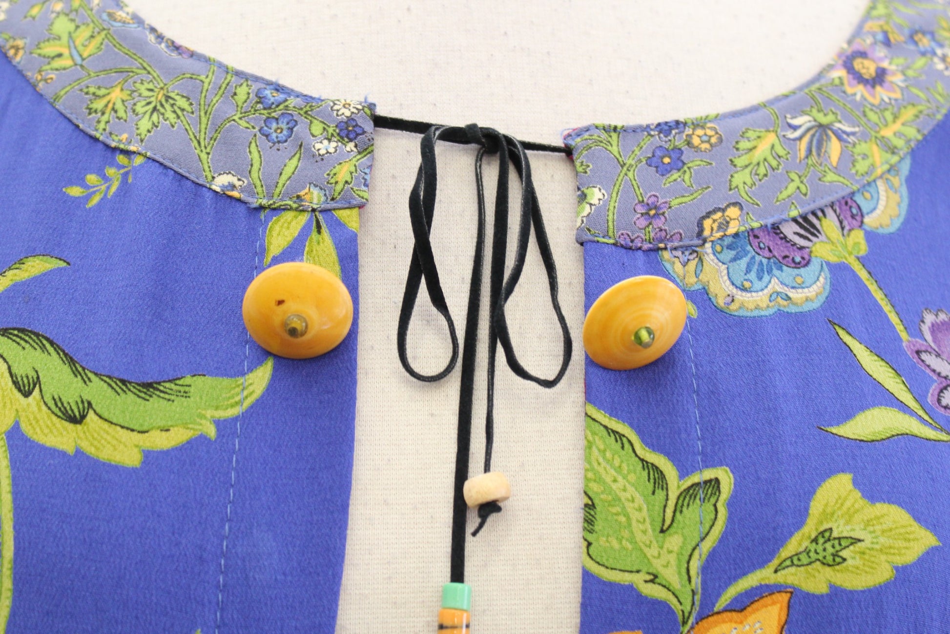 Vtg 90s Blue Patchwork Floral Tie Front Cardigan / Light Topper Jacket Sz 4 Boho