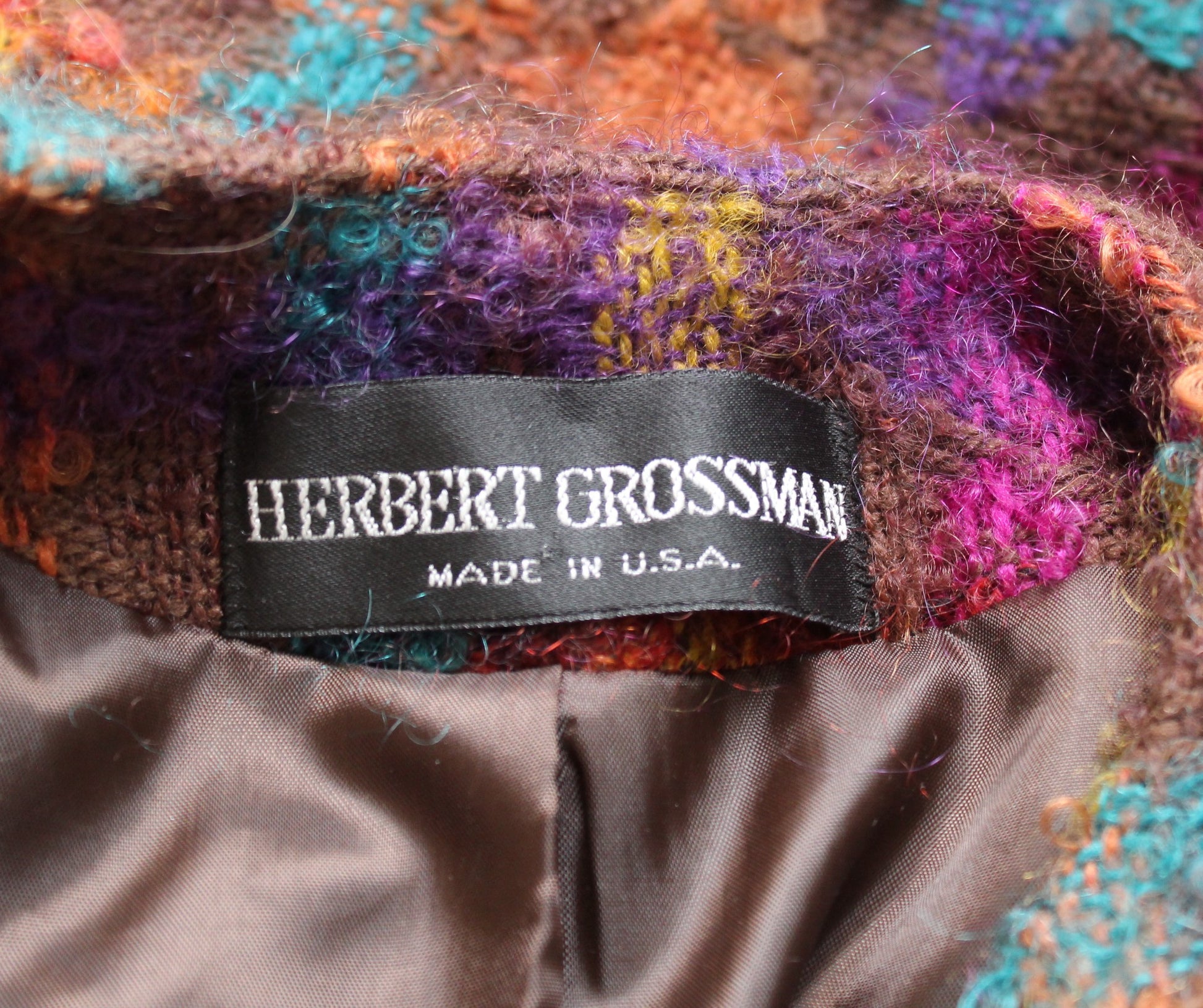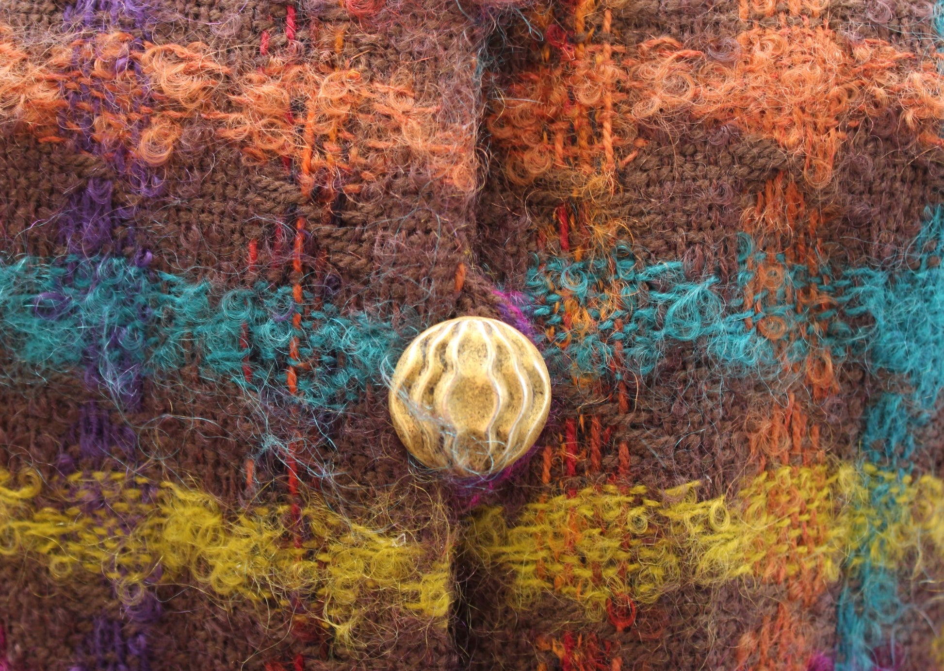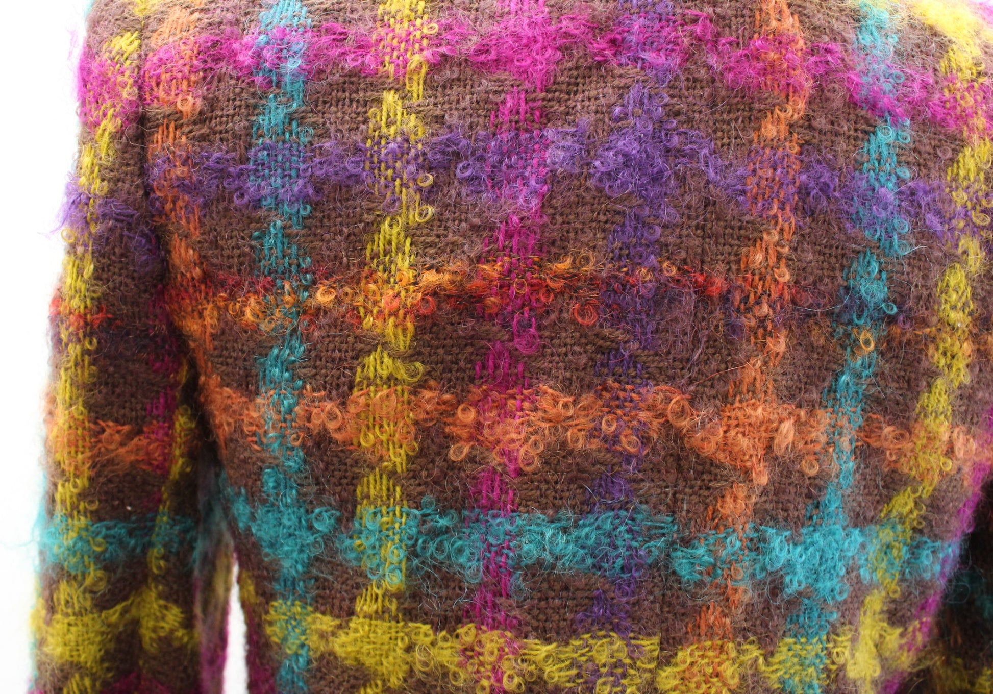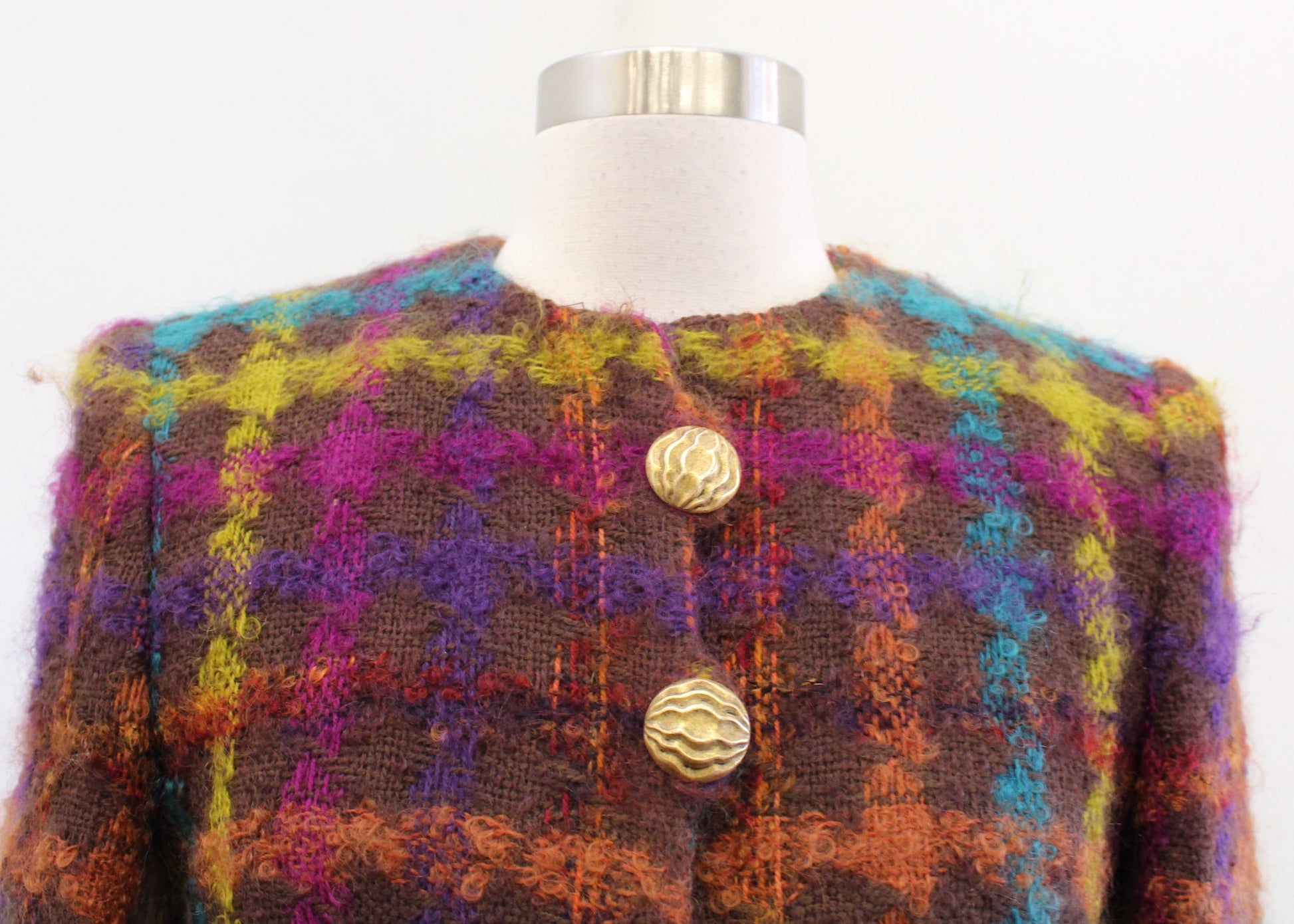 Vtg 90s Brown Colorful Plaid Chunky Button Blazer Jacket Sz 4 Curly Tweed Retro