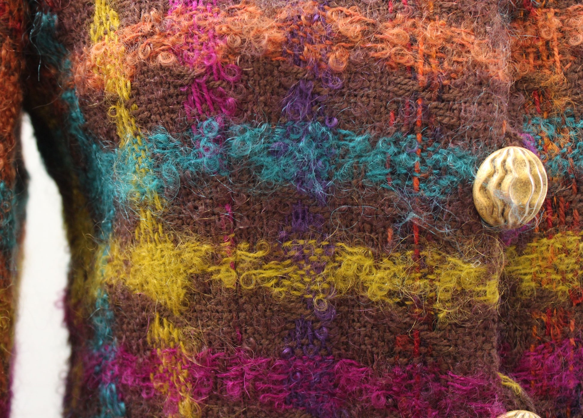 *No material tag. Feels/looks(fuzzy texture) like mohair or a mohair blend.
