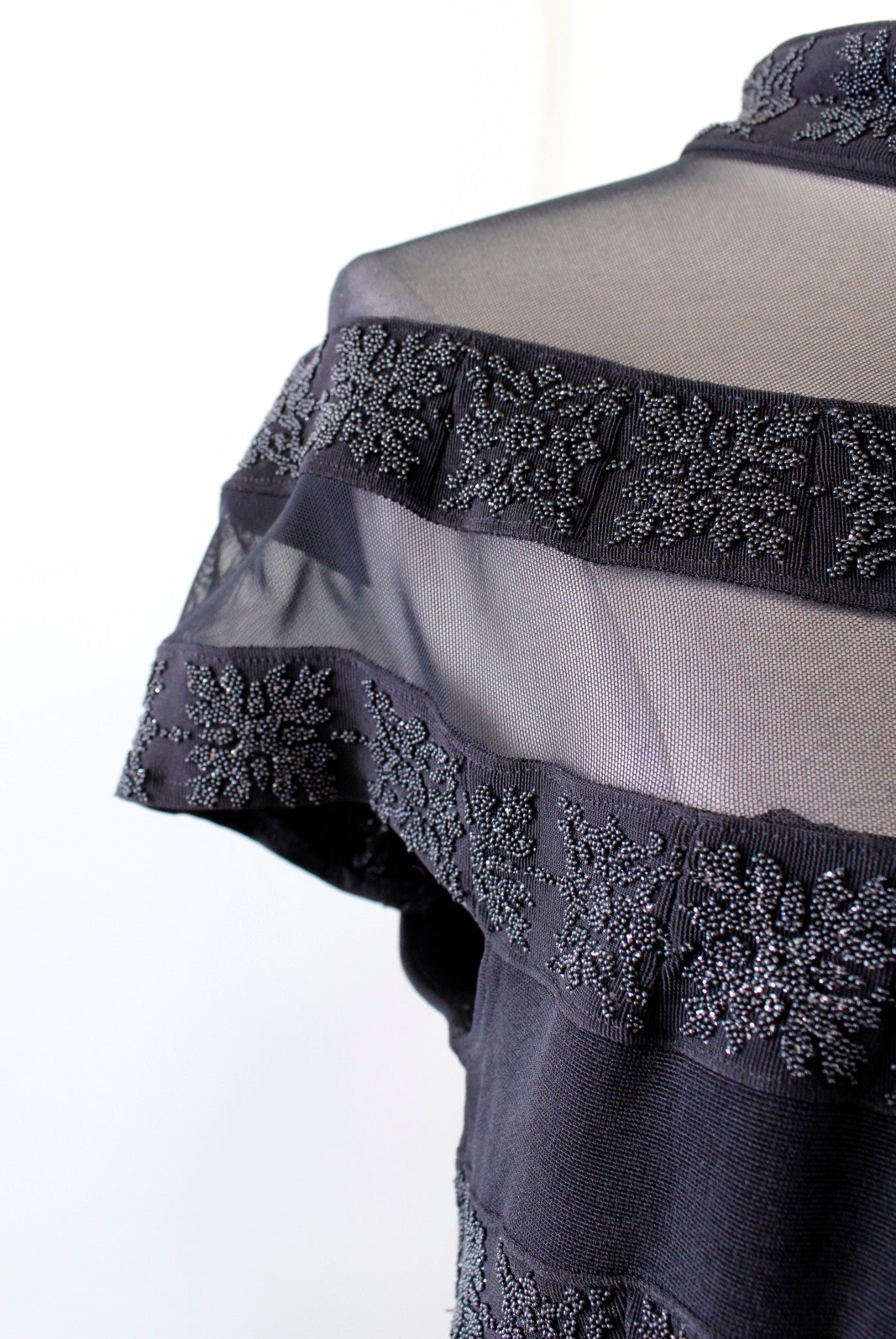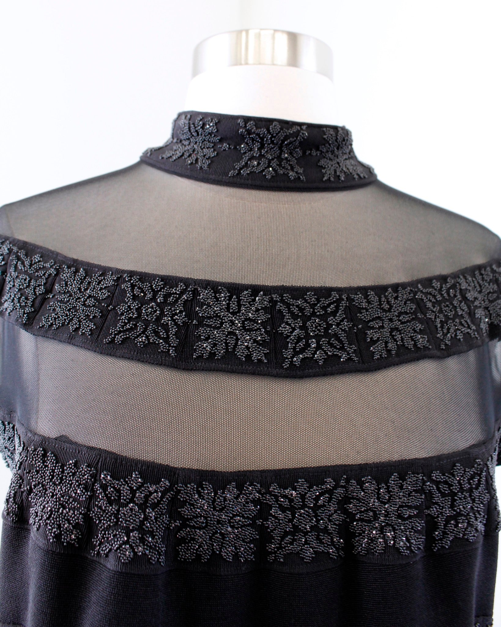 Vtg 90s Cache Black Mesh Mock Neck Beaded Cocktail Party Dress Size L Evening