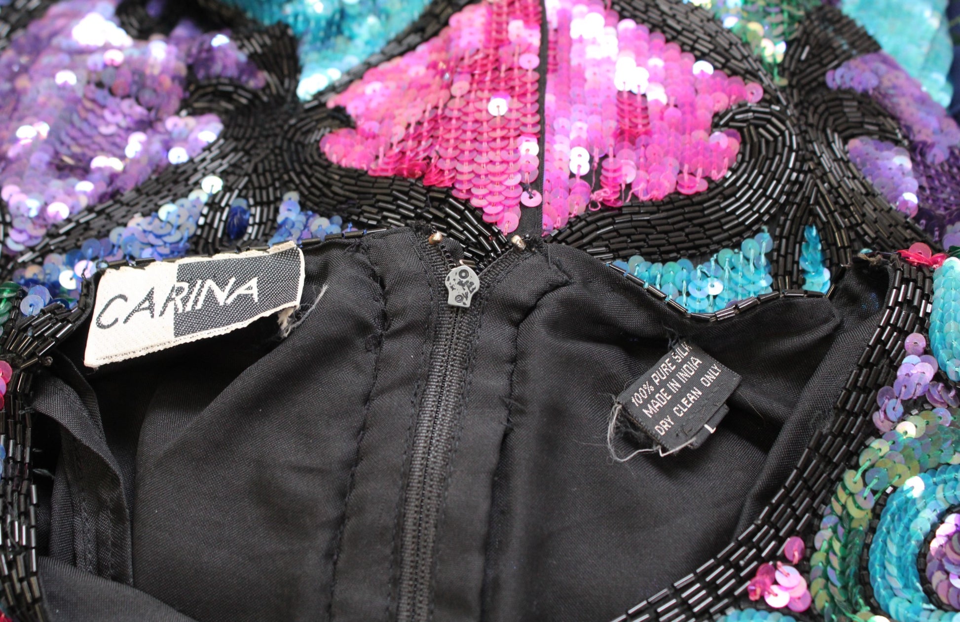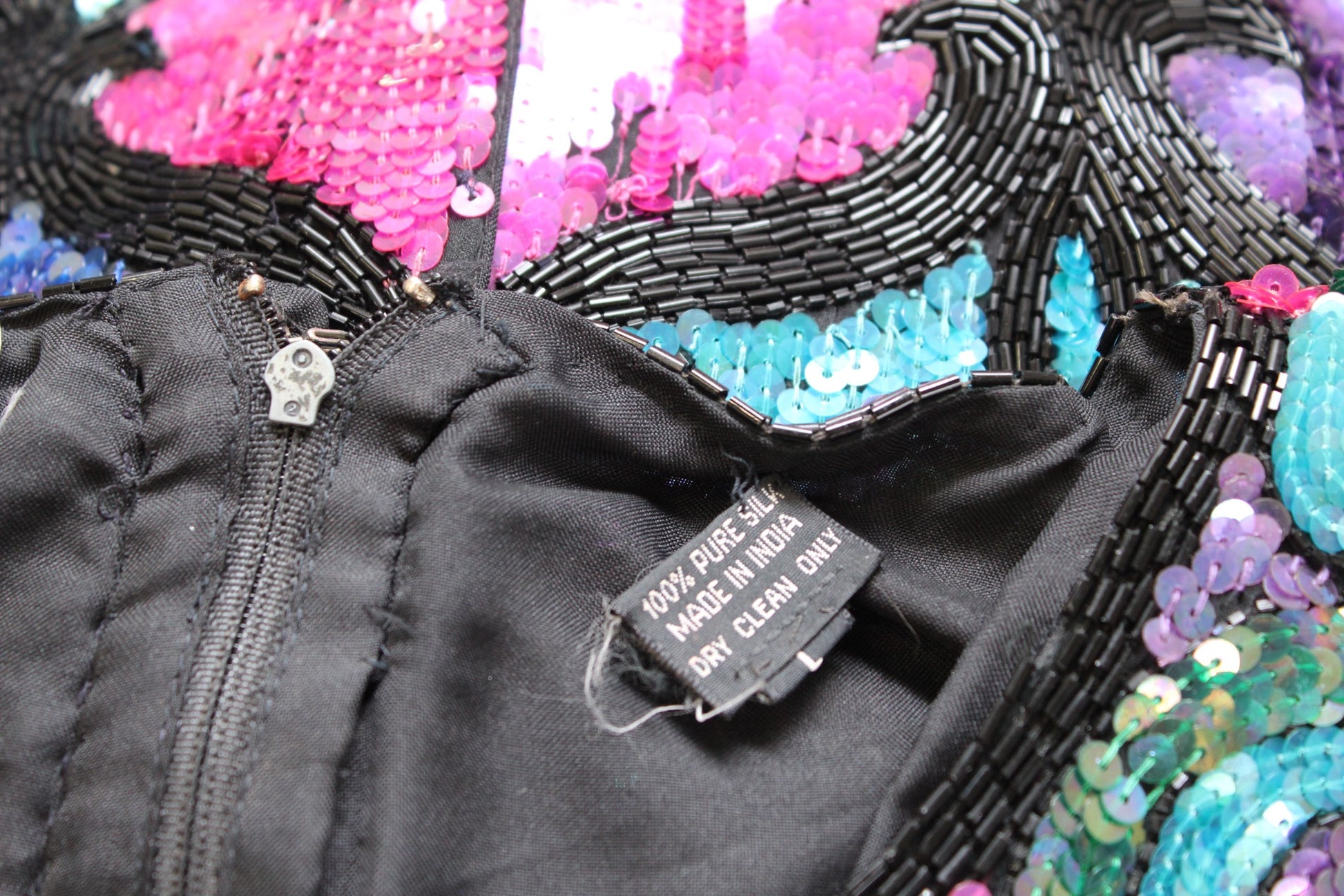 Vtg 90s Colorful Color Block Silk Beaded Sequin Cocktail Party Dress Size M ?