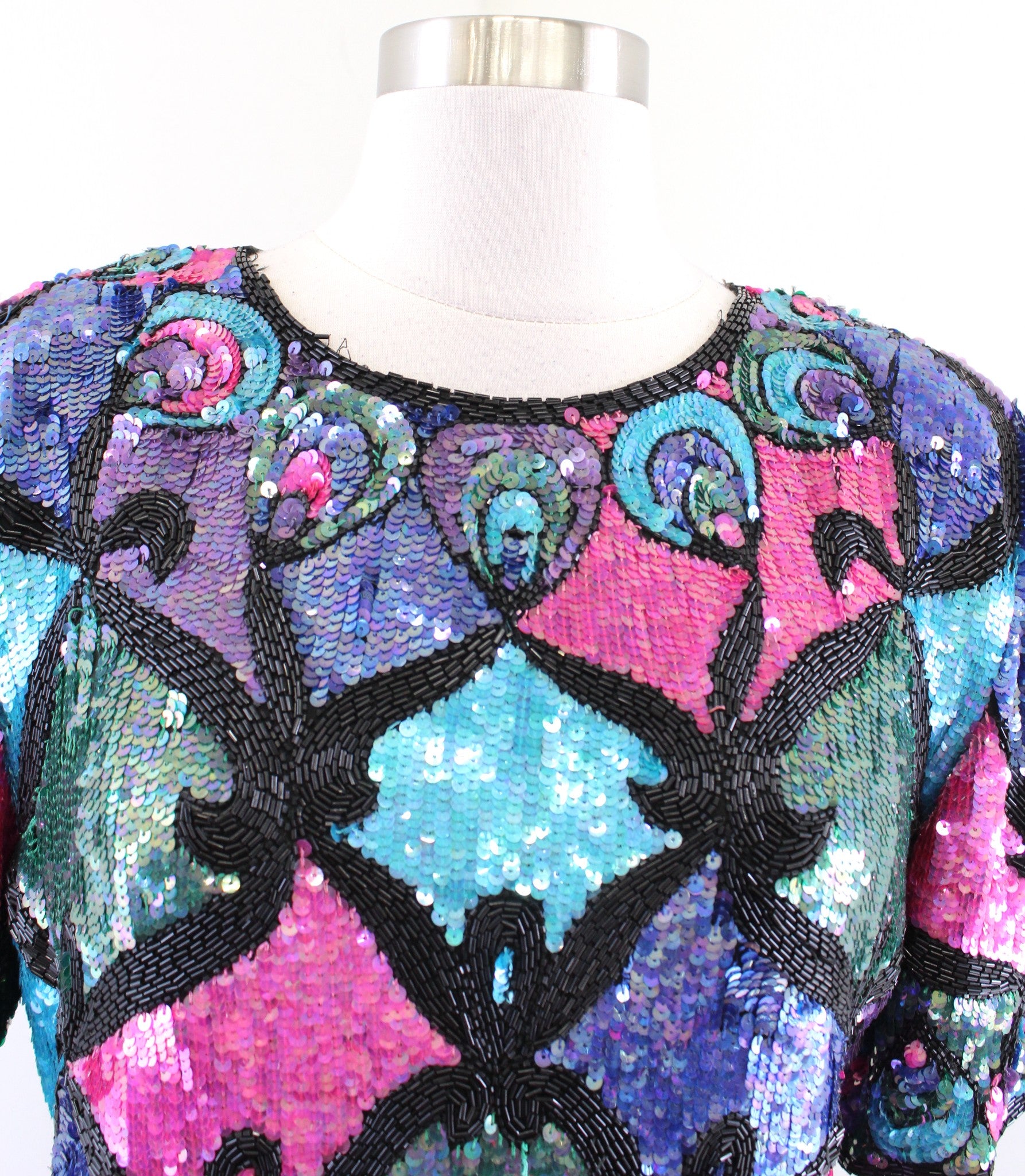 There are some minor missing sequins here and there, most notably a strip along the stomach area.