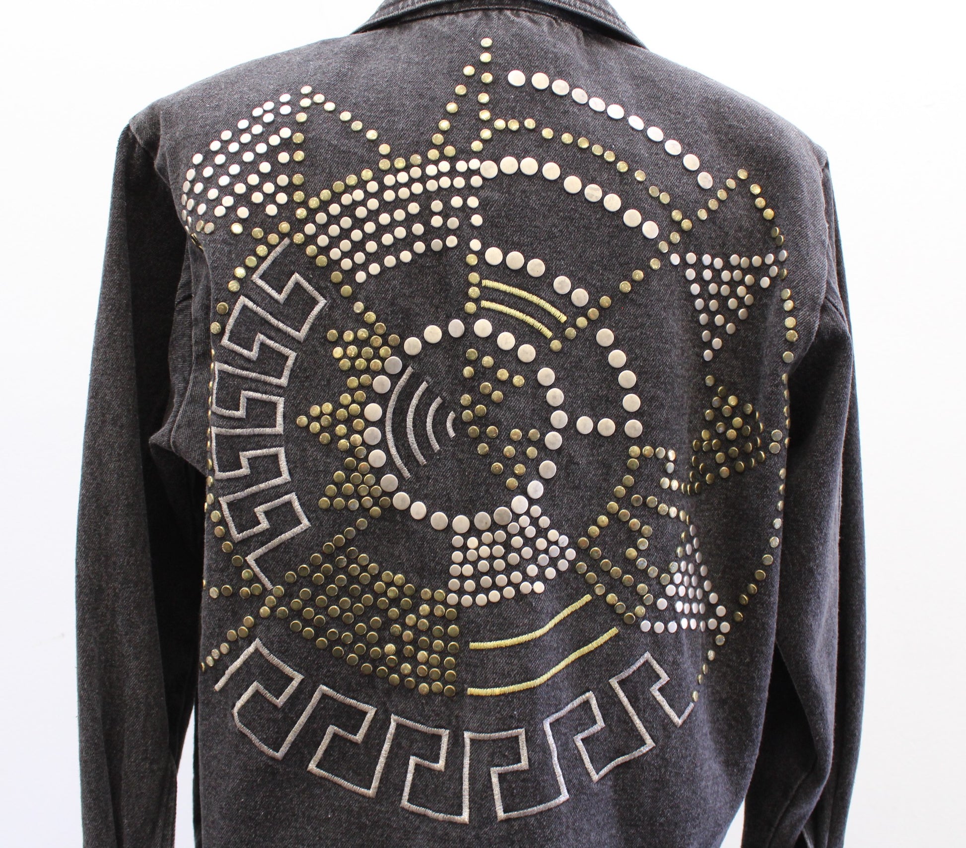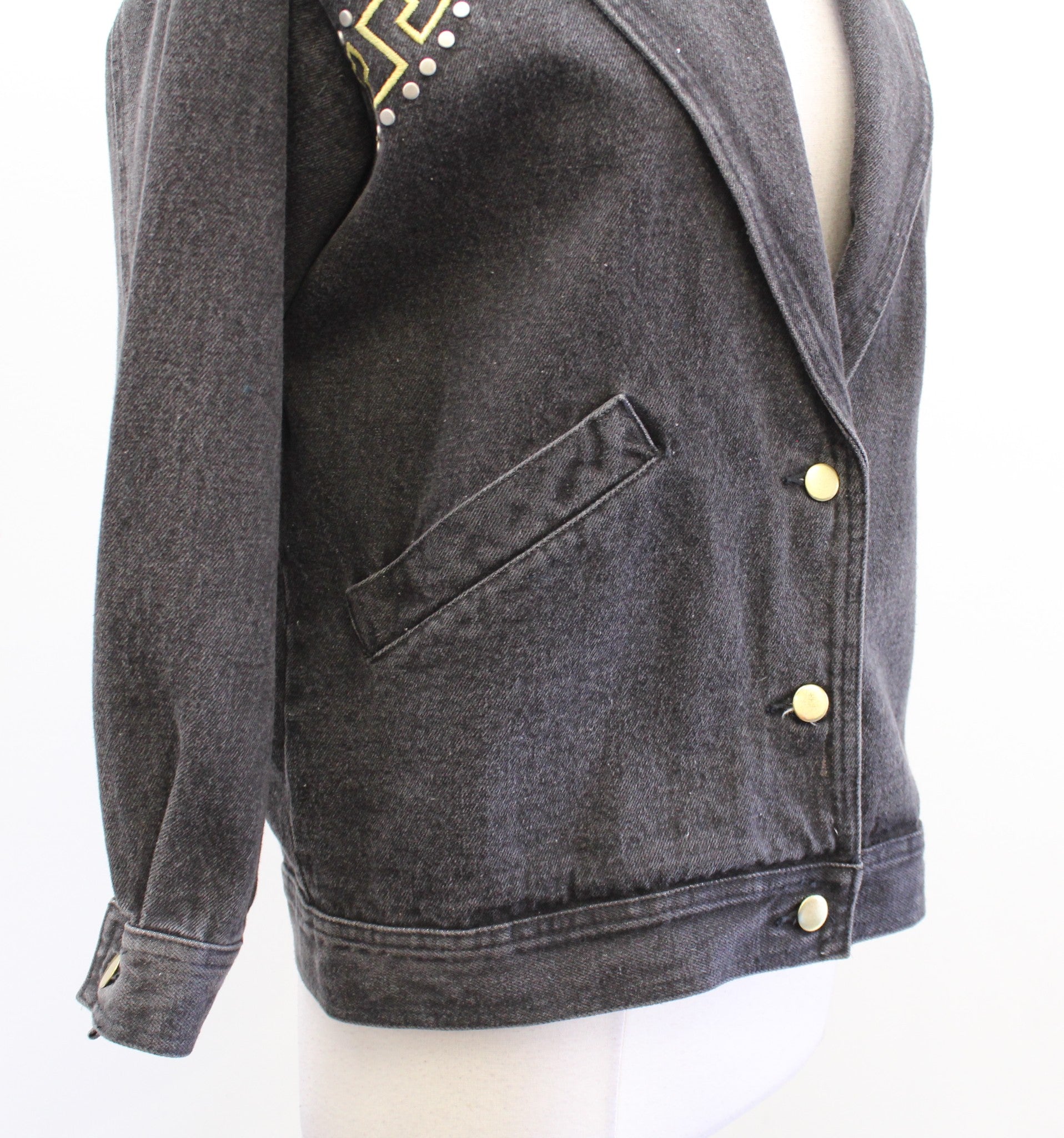 Vtg 90s Gray Gold Silver Studded Embellished Denim Jean Jacket Size 4 Retro