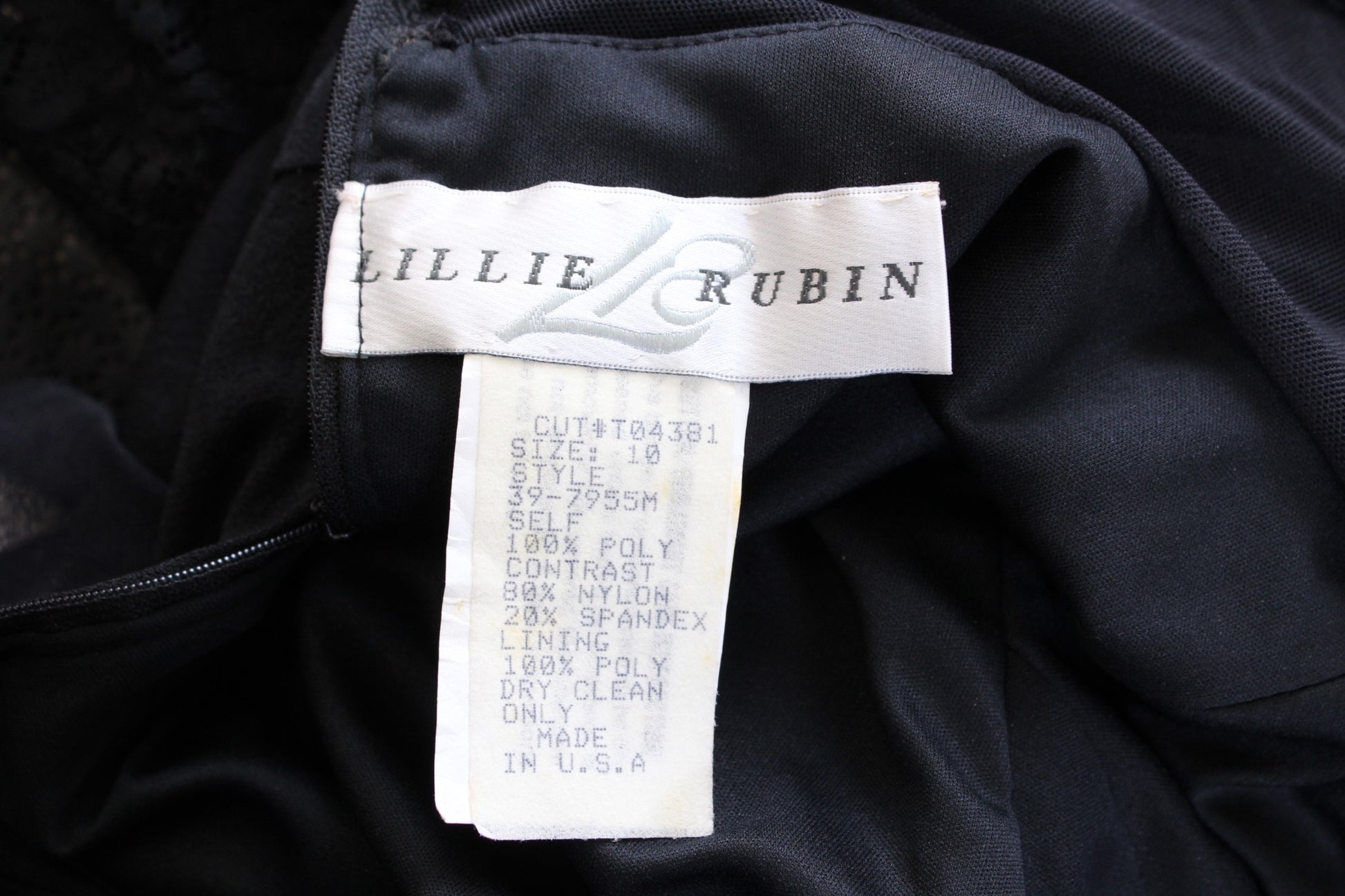 Vtg 90s Lillie Rubin Black Mesh Ruffle Ruched Hi Lo Cocktail Evening Dress Sz 10