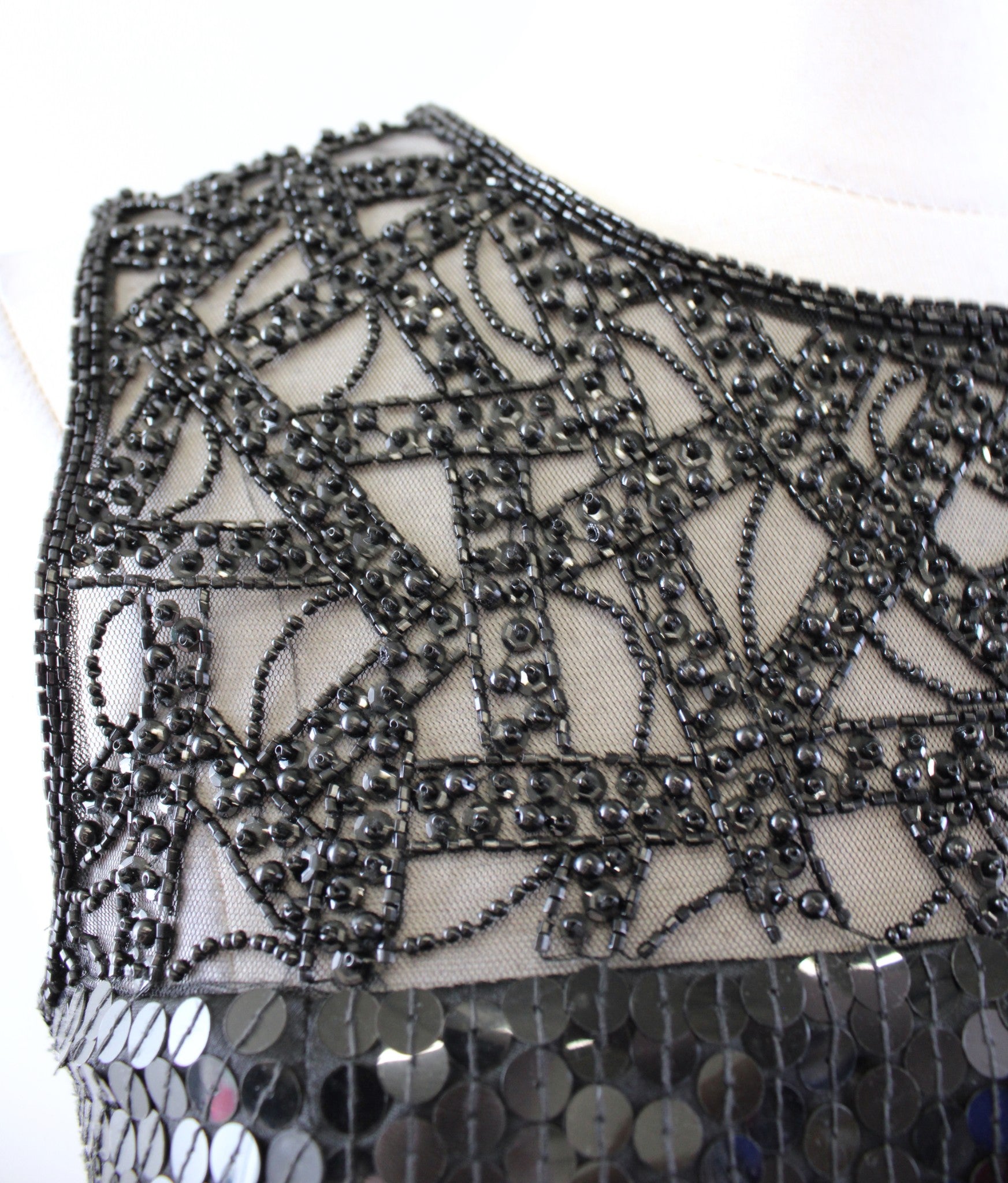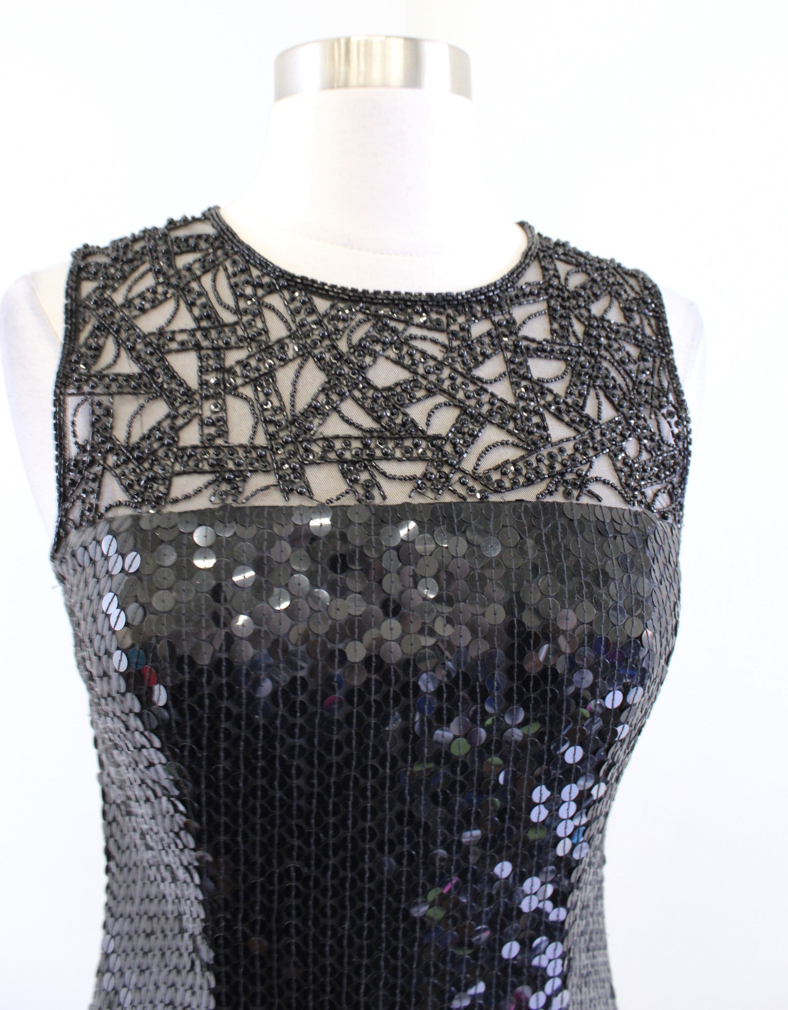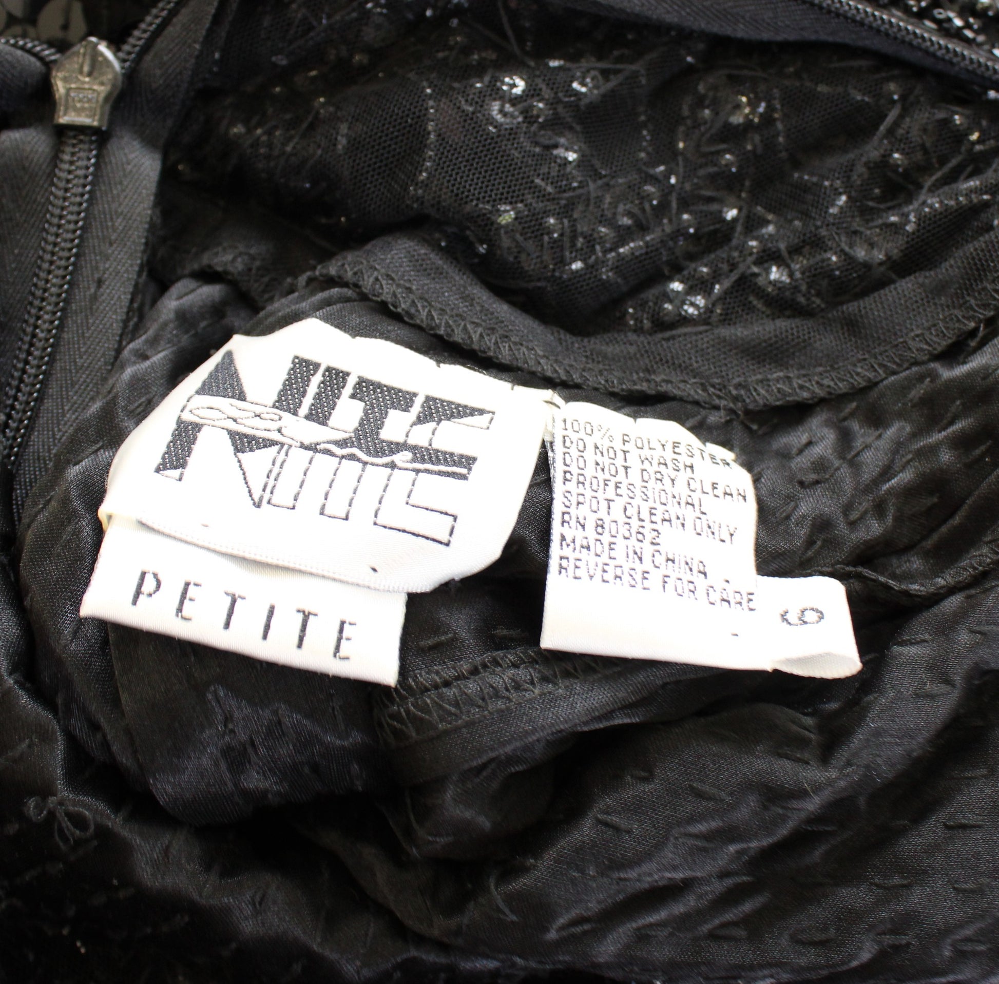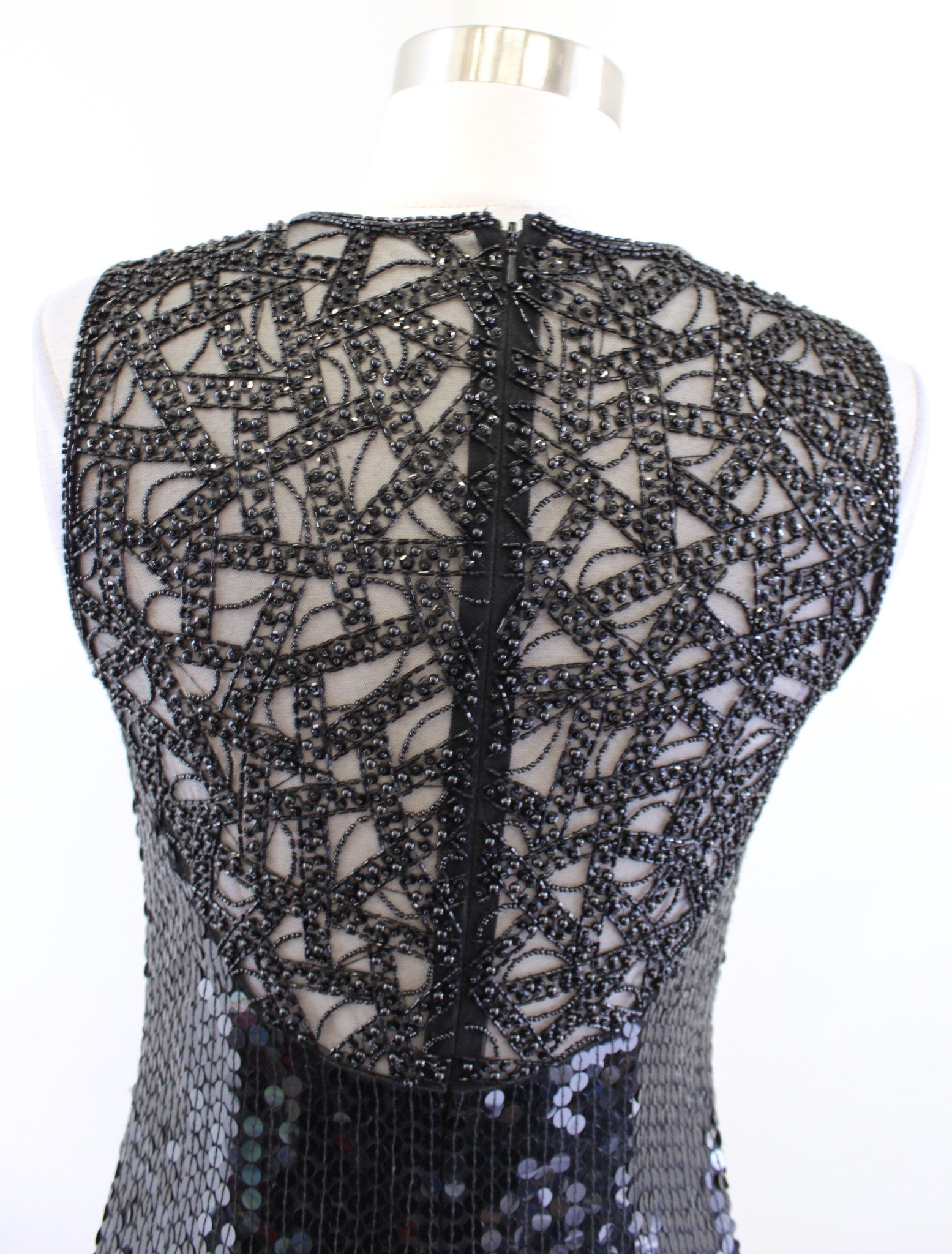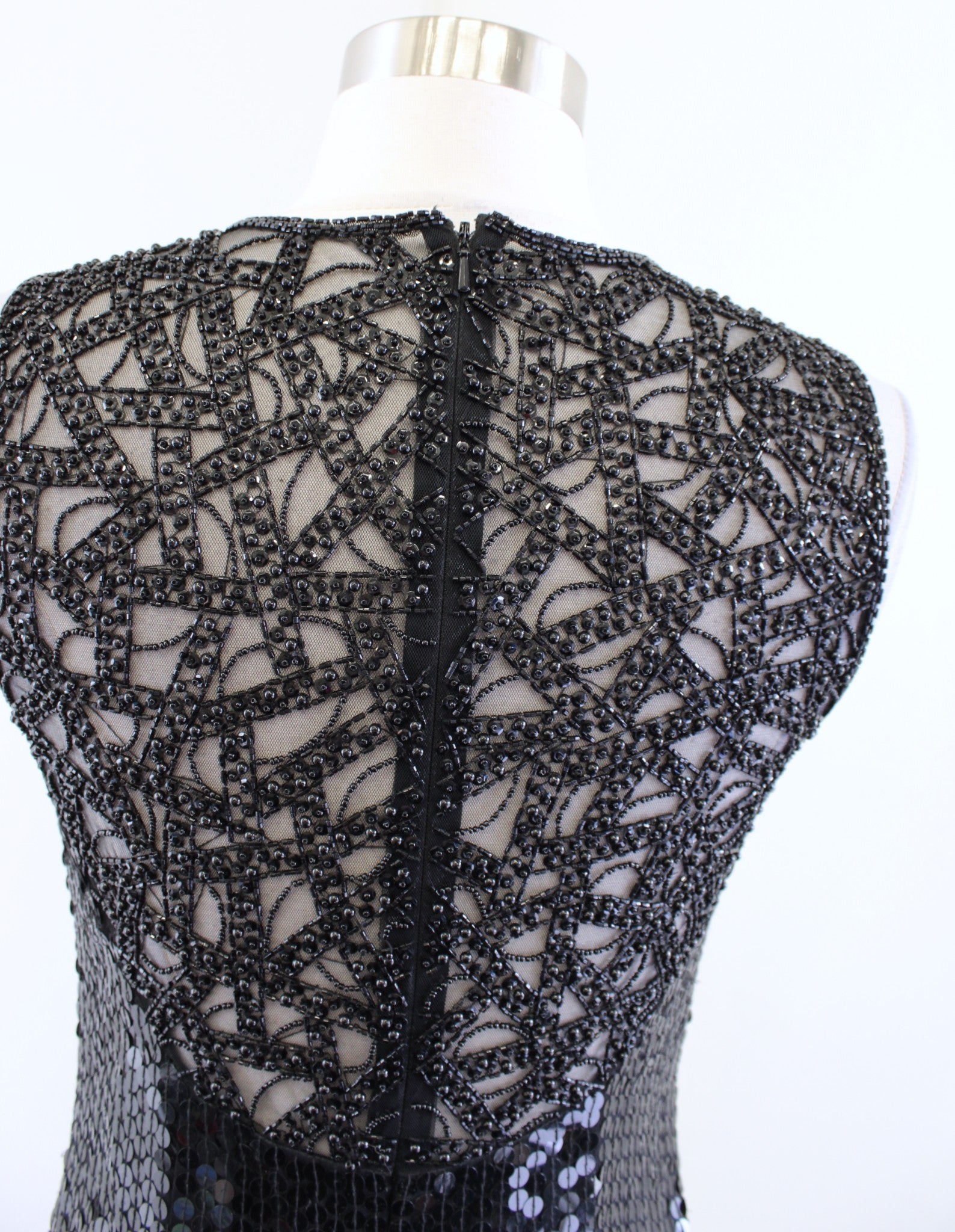 Vtg 90s Niteline Black Sequin Beaded Mesh Open Back Cocktail Party Dress Size 6P