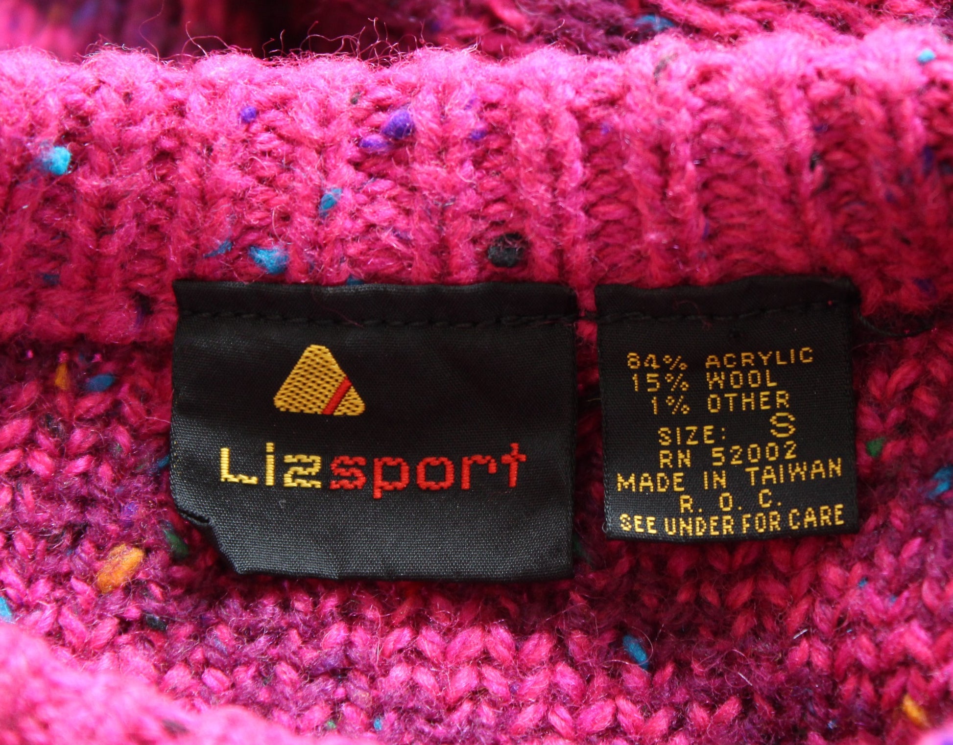 Vtg 90s Pink Confetti Knit Chevron Striped Sweater Size S Wool Retro Fair Isle