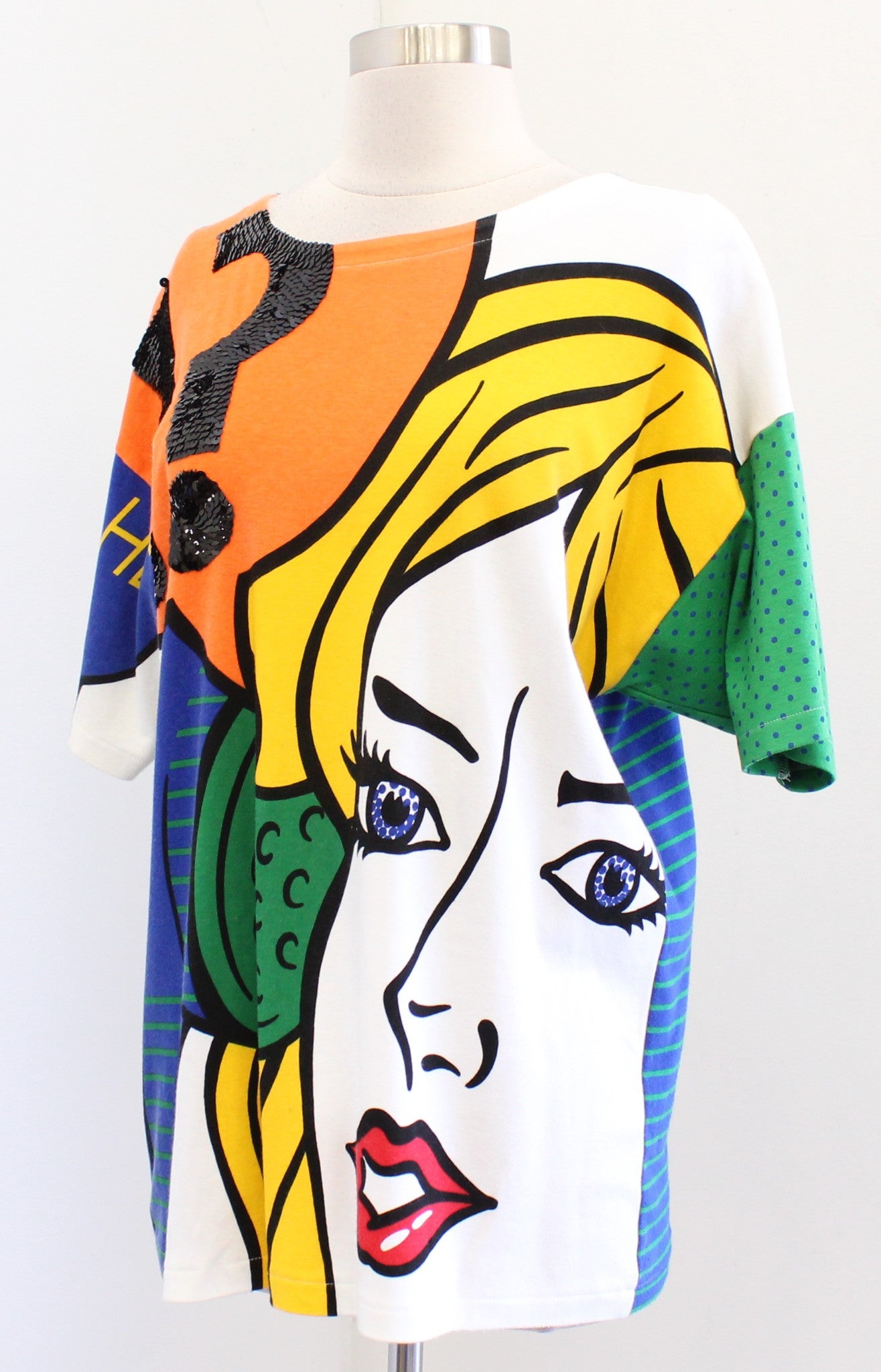 Vtg 90s Pop Art Bold Print T Shirt Top Blouse Size M Art to Wear Retro Unique