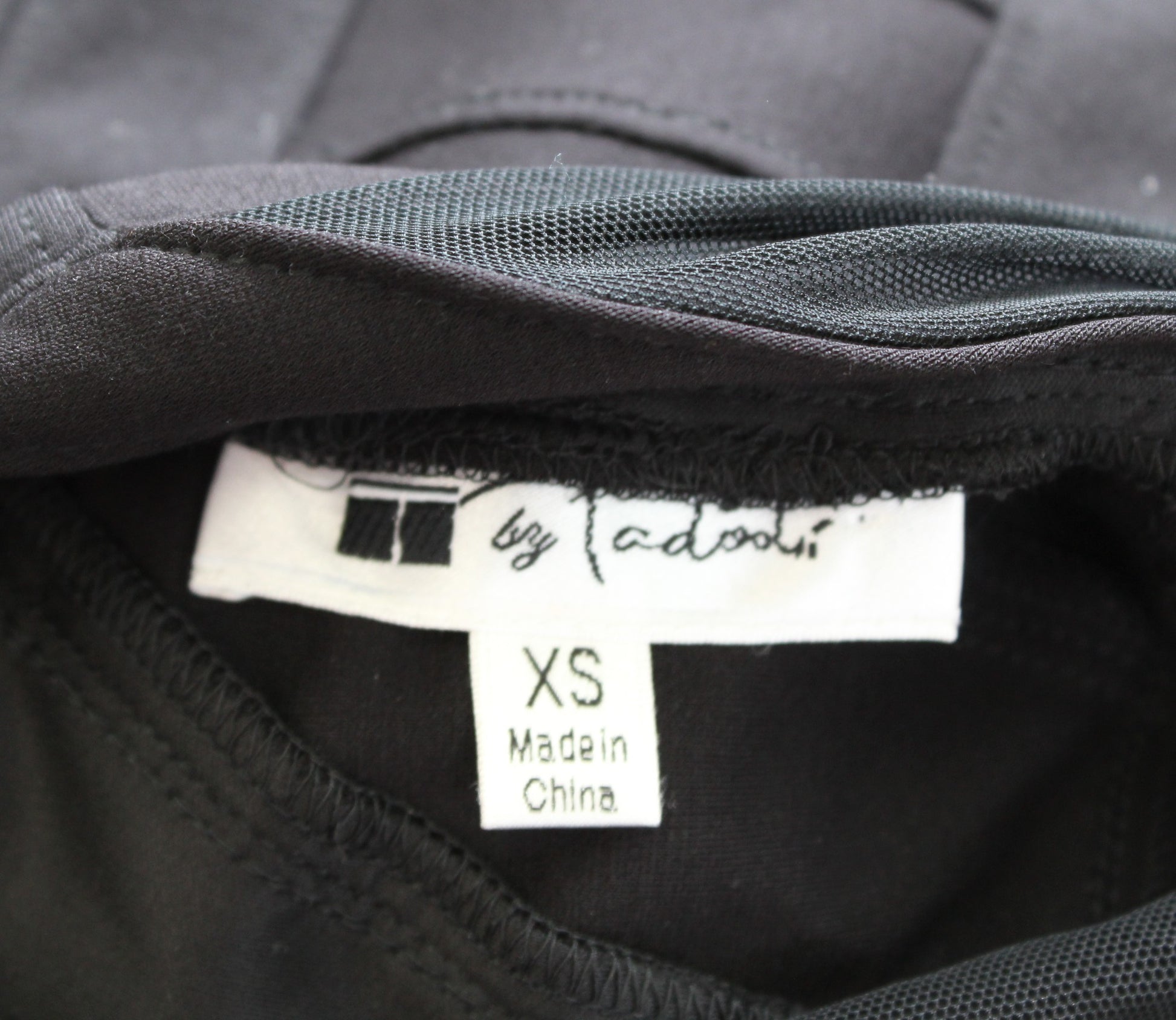 Vtg 90s Tadashi Black Mesh Cutout V Neck Bandage Cocktail Party Dress Size XS