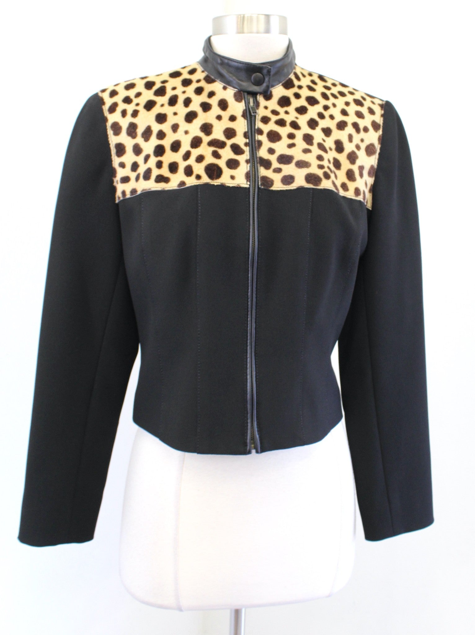 Vtg Alberto Makali Black Goat Hair Leather Zip Front Crop Moto Jacket Size 4