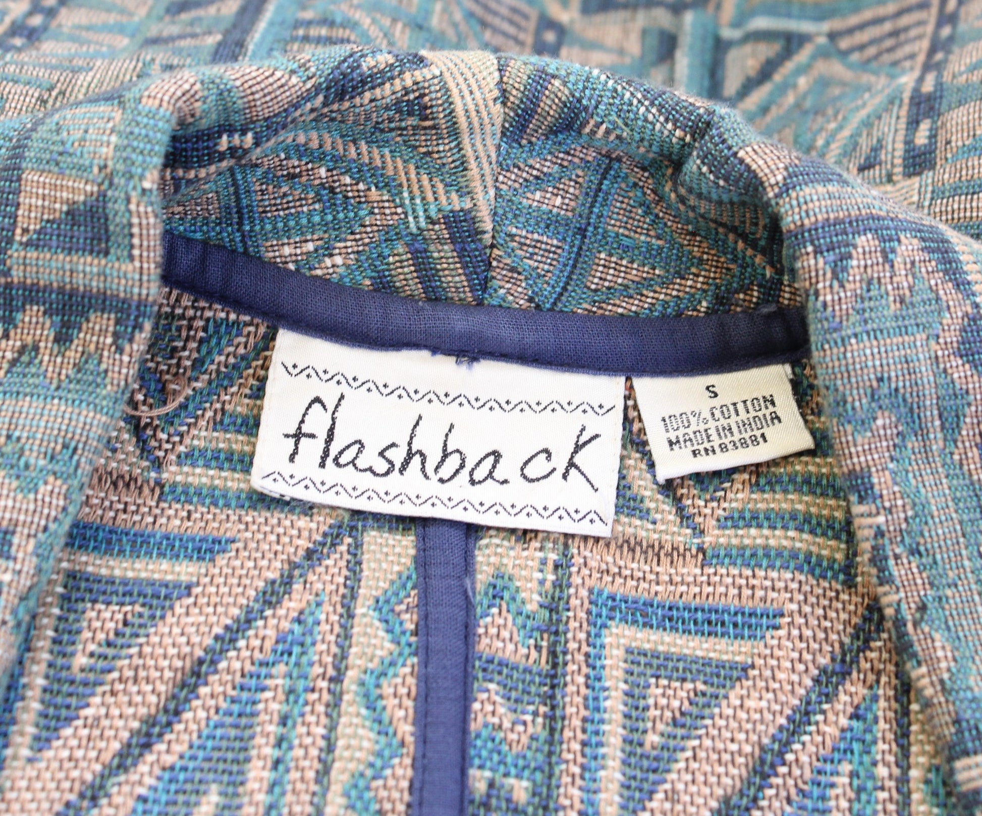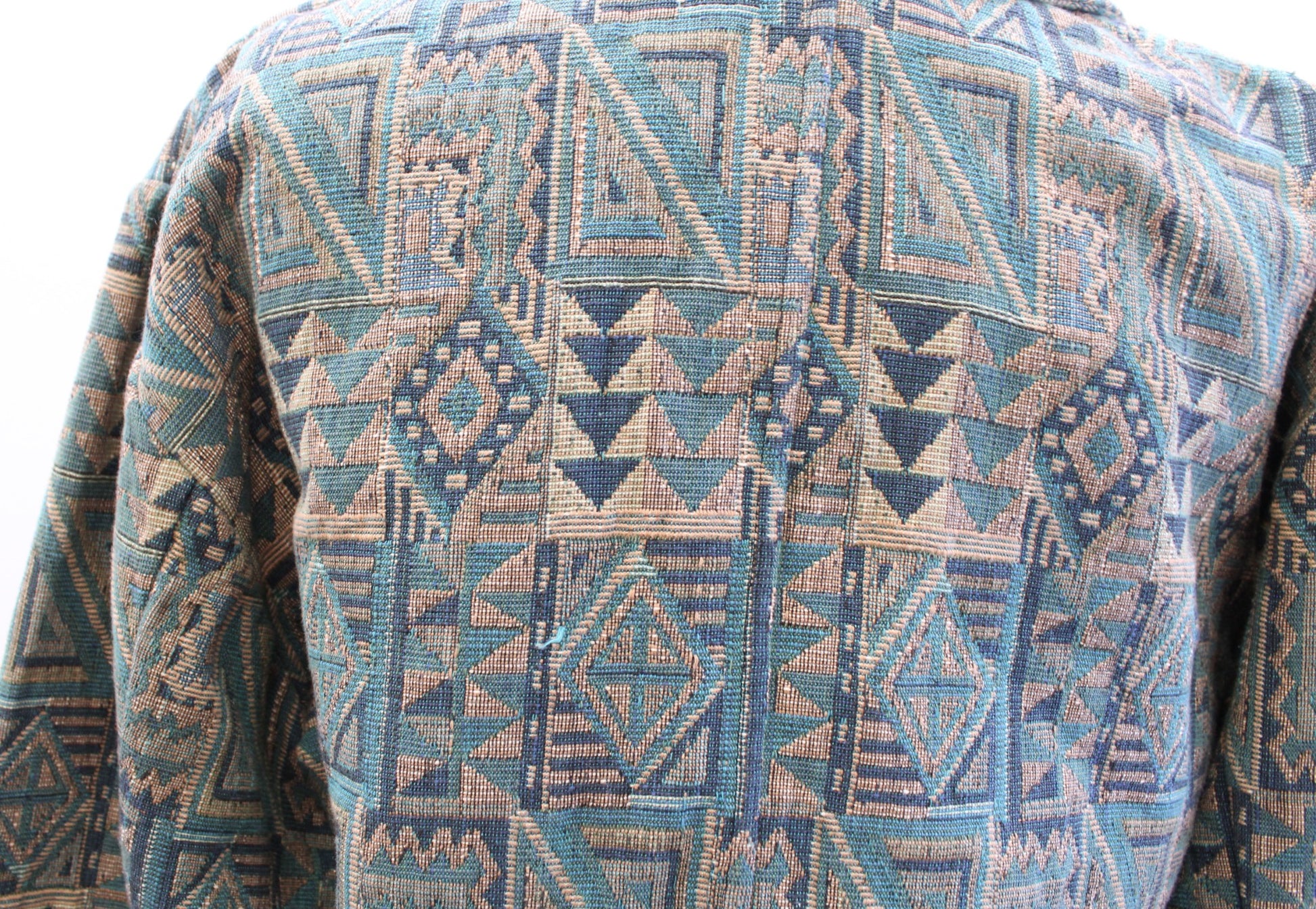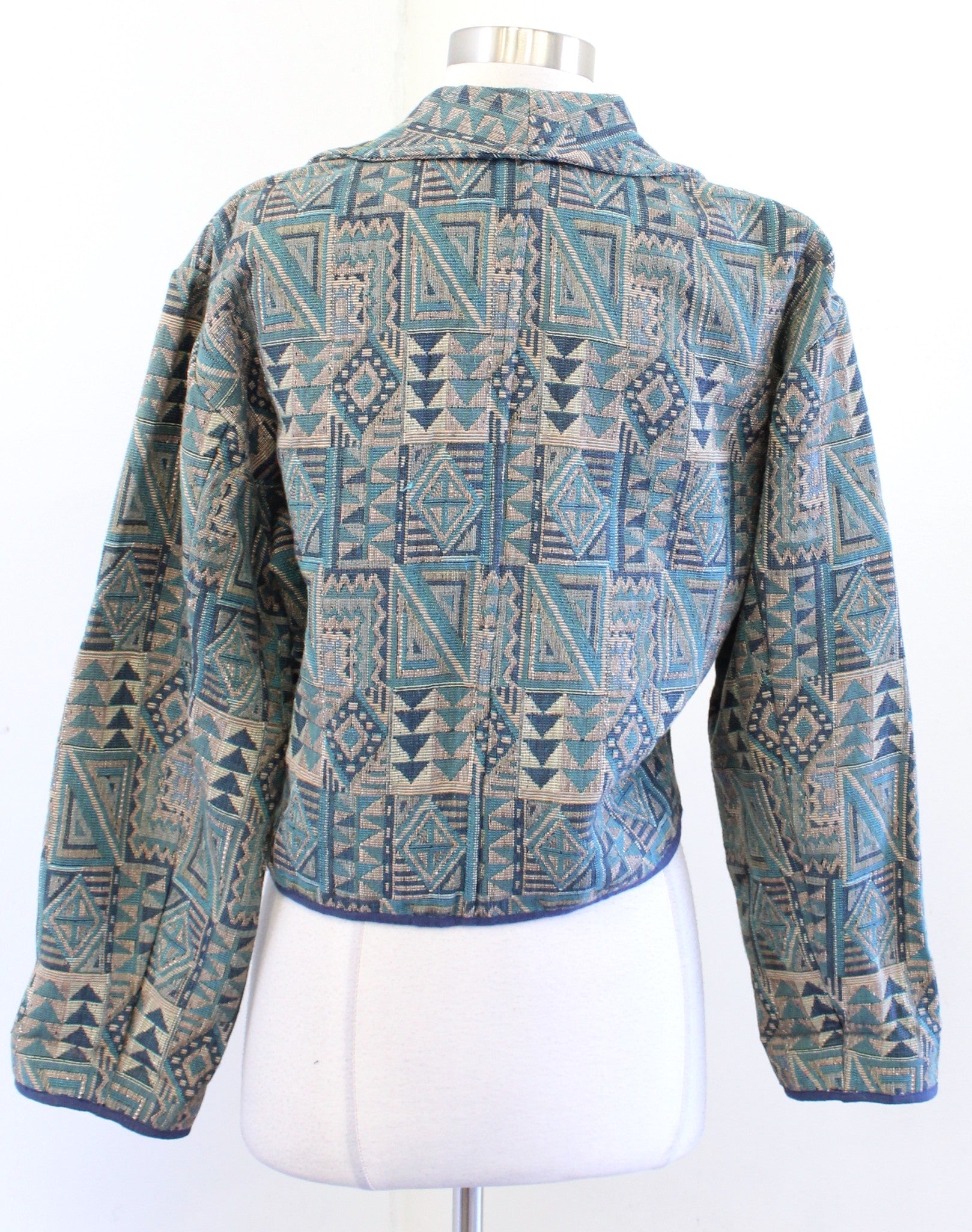 Vtg Flashback Teal Green Southwestern Geometric Cropped Tapestry Jacket Boho S