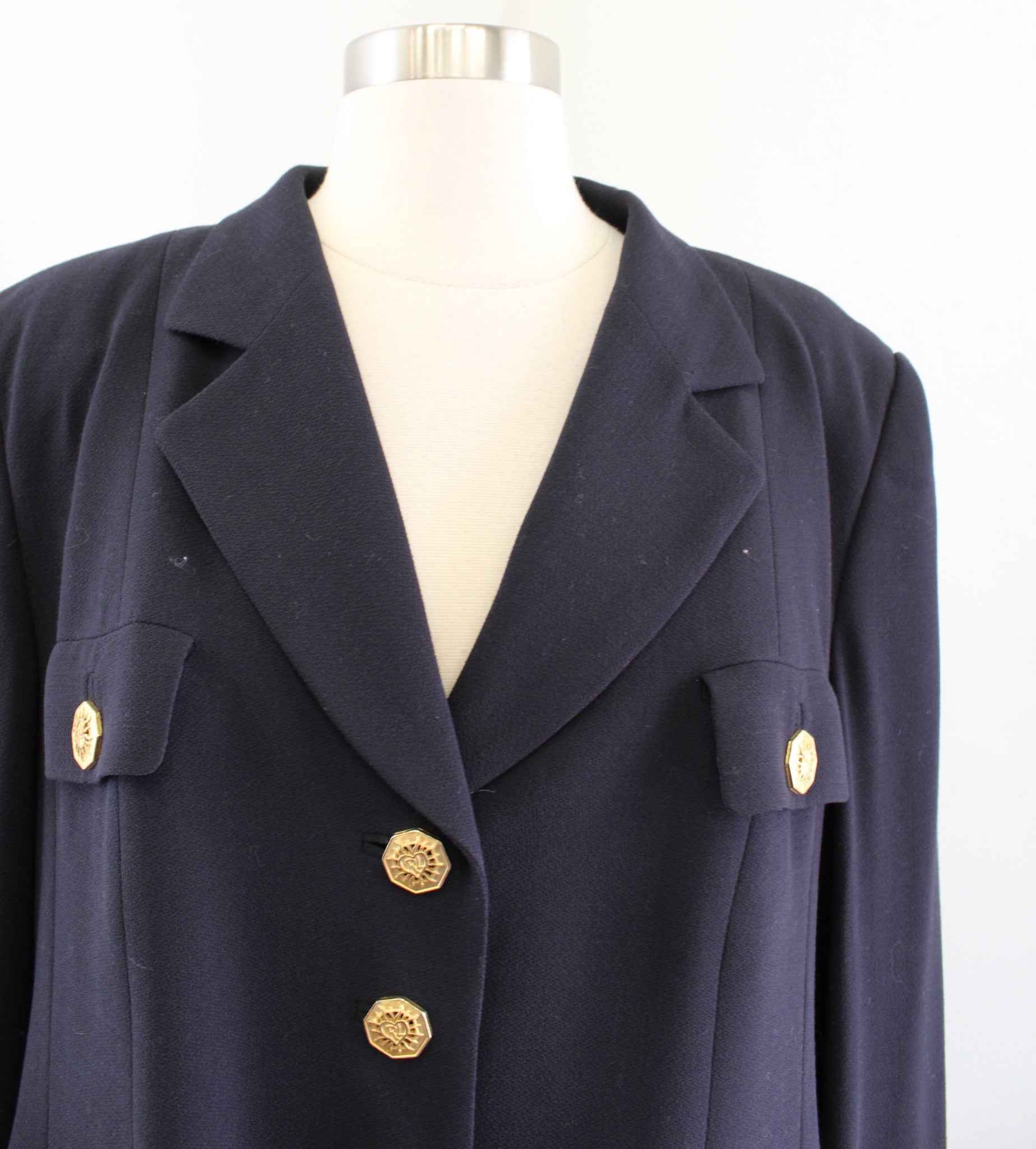 Vtg Rena Lange Bergdorf Goodman Dark Navy Blue Wool Blazer Jacket Size 44