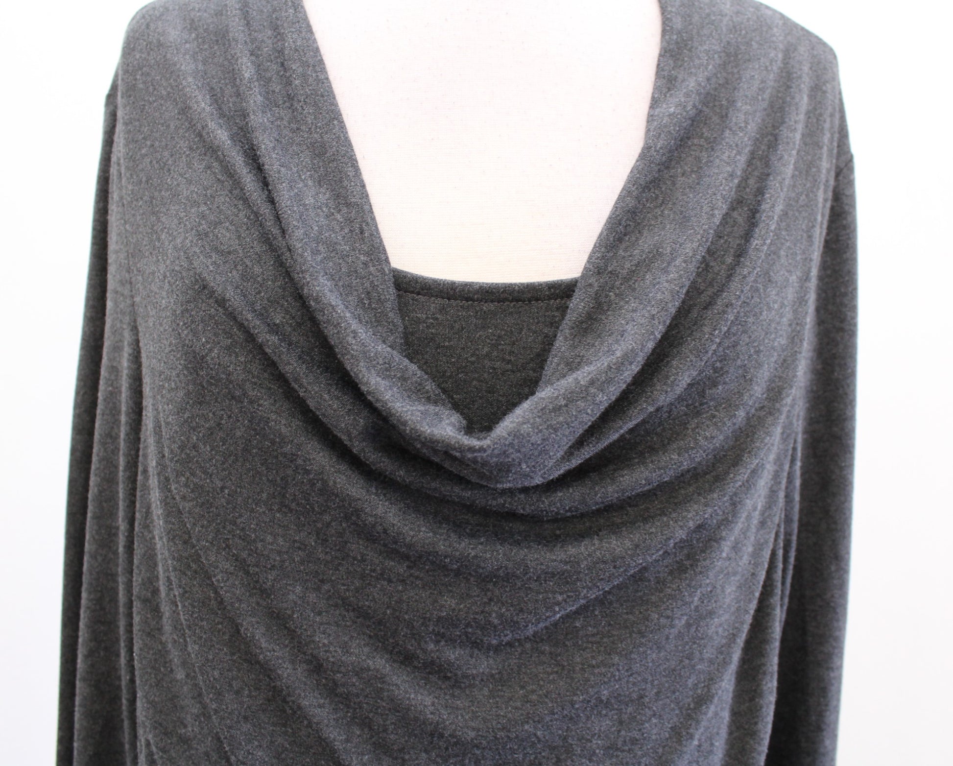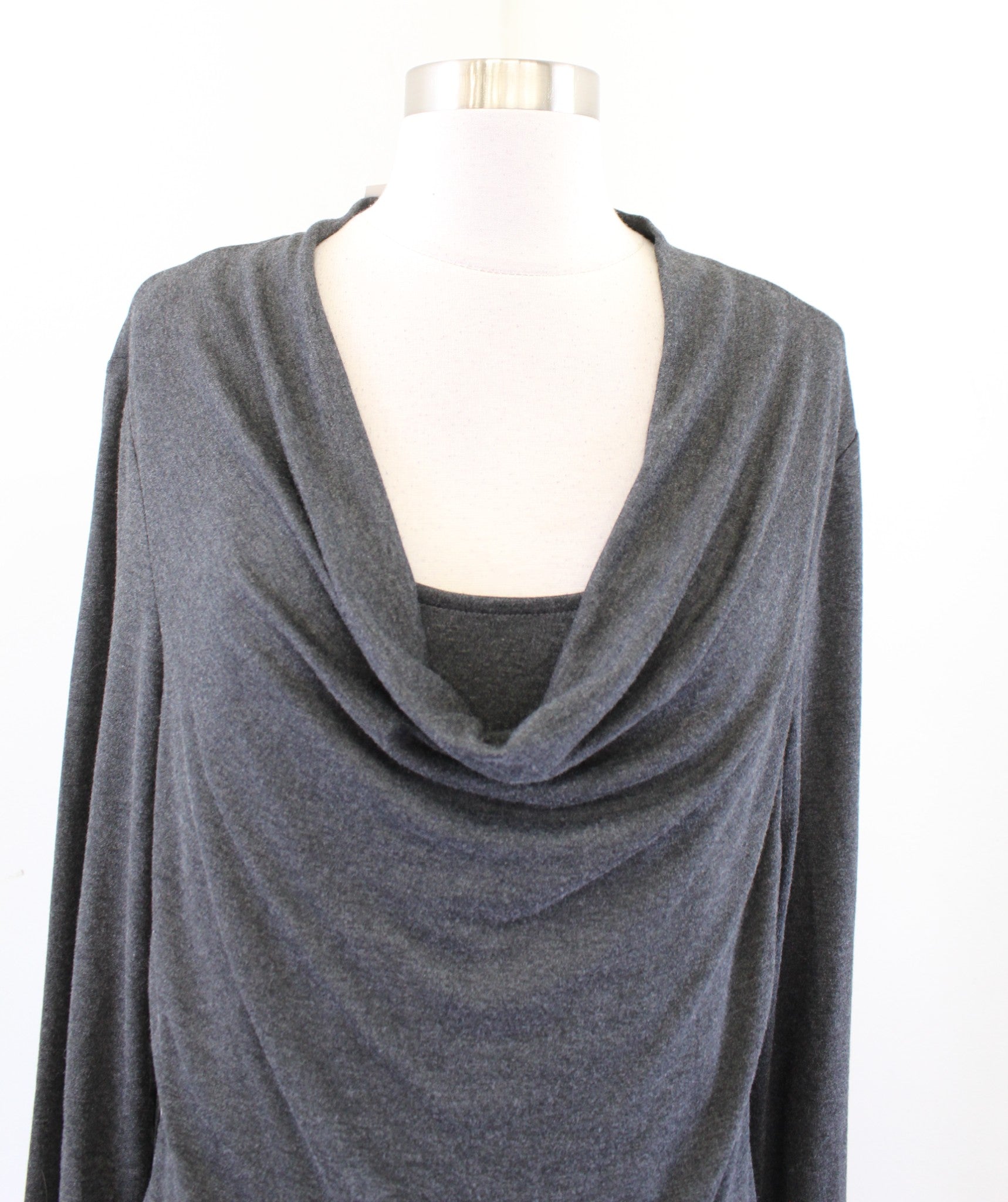 White House Black Market Gray Soft Knit Double Layer Drape Neck Top Blouse Sz L