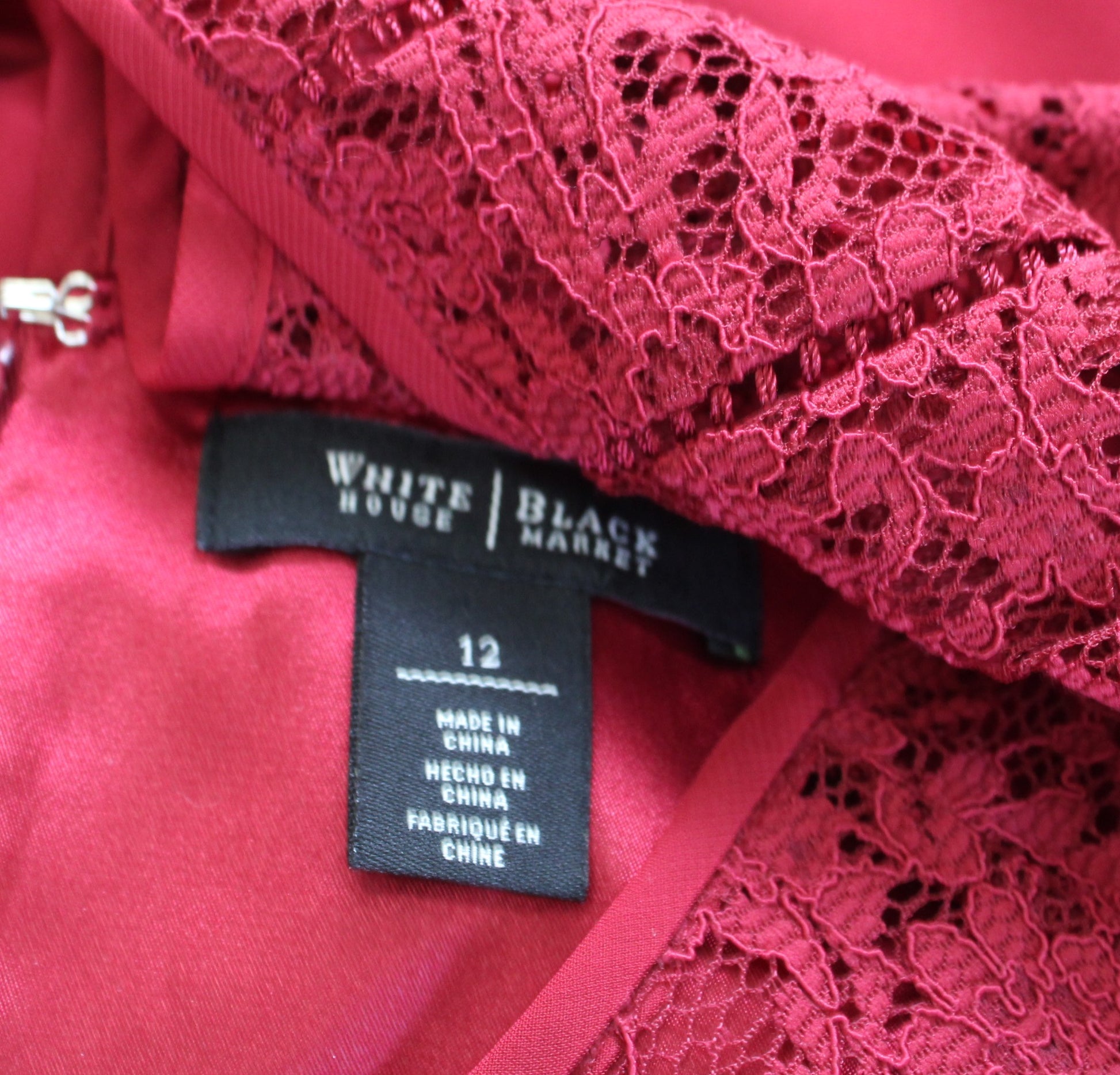 White House Black Market Red Lace Neckline Cap Sleeve Shift Dress Cocktail Sz 12
