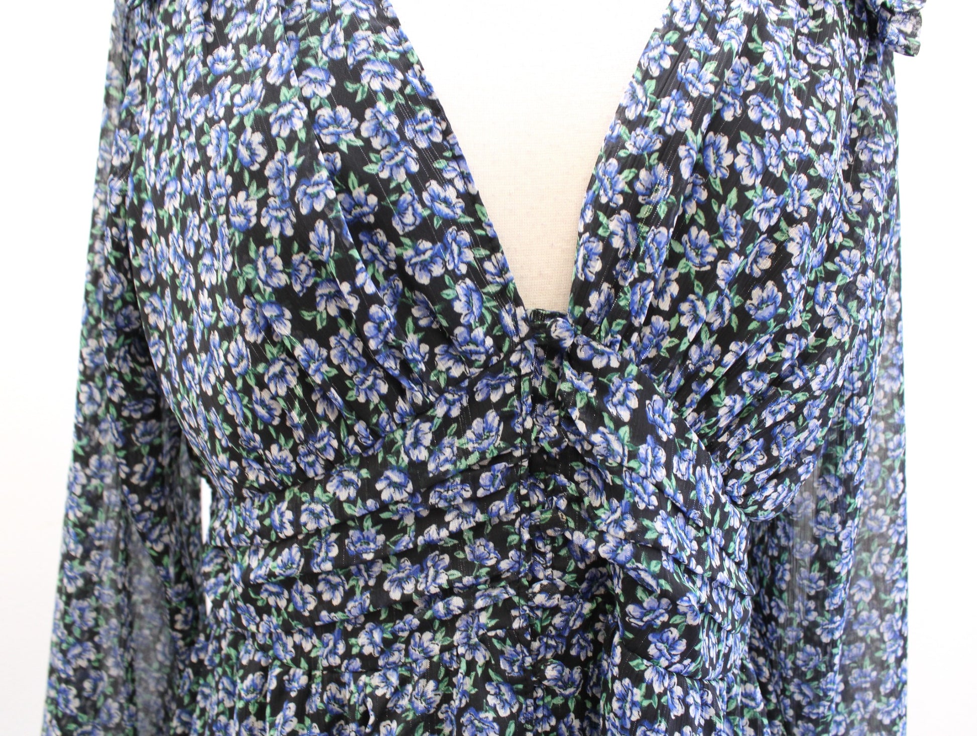 Zara Black Blue Green Floral V Neck Smocked Babydoll Mini Dress Size XXL Ruffle