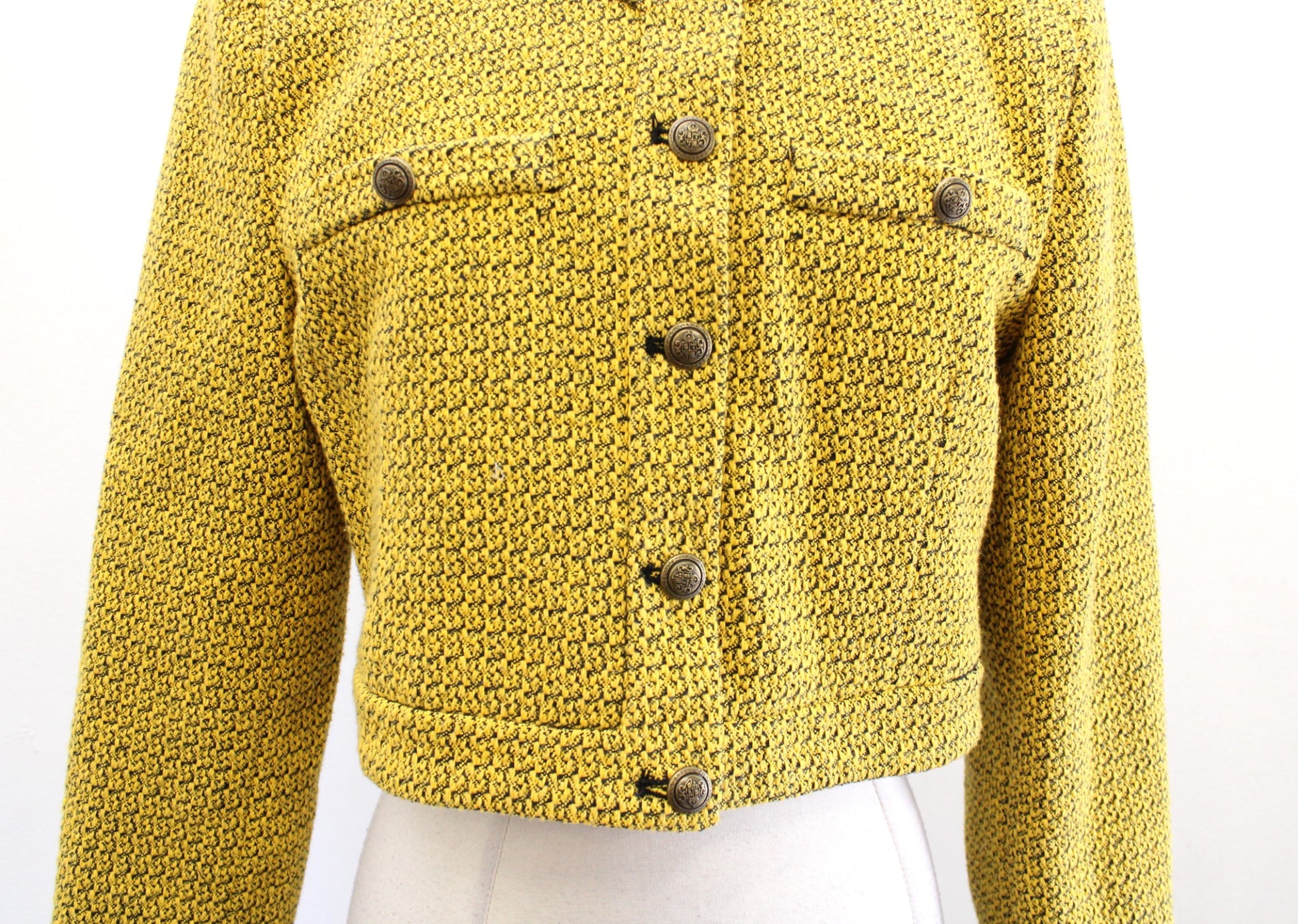 Zara Womens Yellow Black Textured Tweed Cropped Blazer Jacket Size L